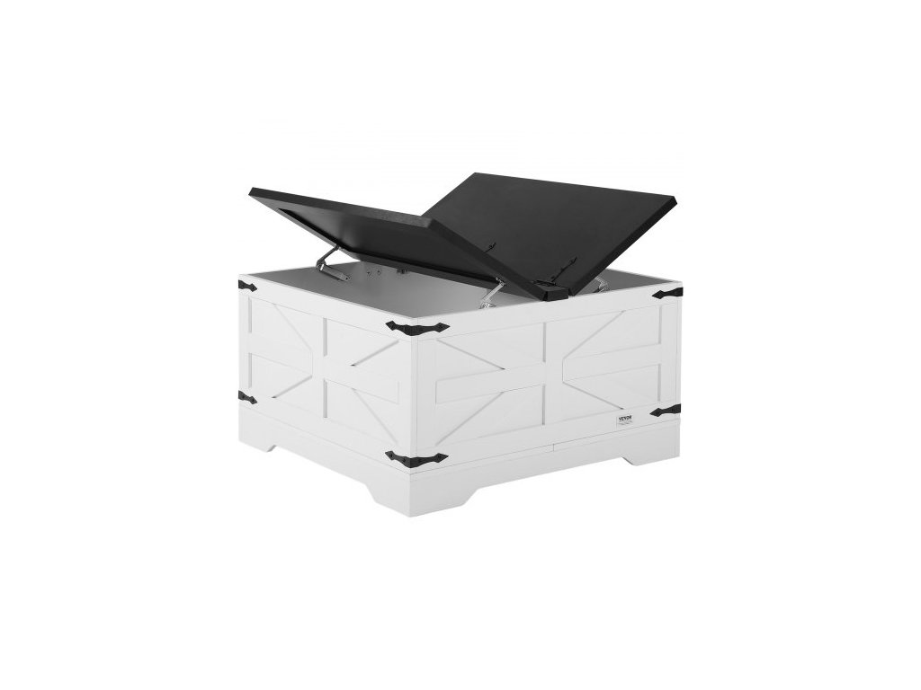 Konferenční stolek 31,5" ve farmářském stylu, čtvercový konferenční stolek s panty a velkým úložným prostorem, dřevěný rustikální koktejlový stolek do obývacího pokoje, ložnice, bytu, studia, šedobílýNový trend v bydlení