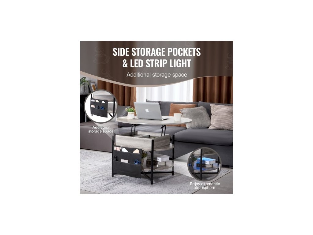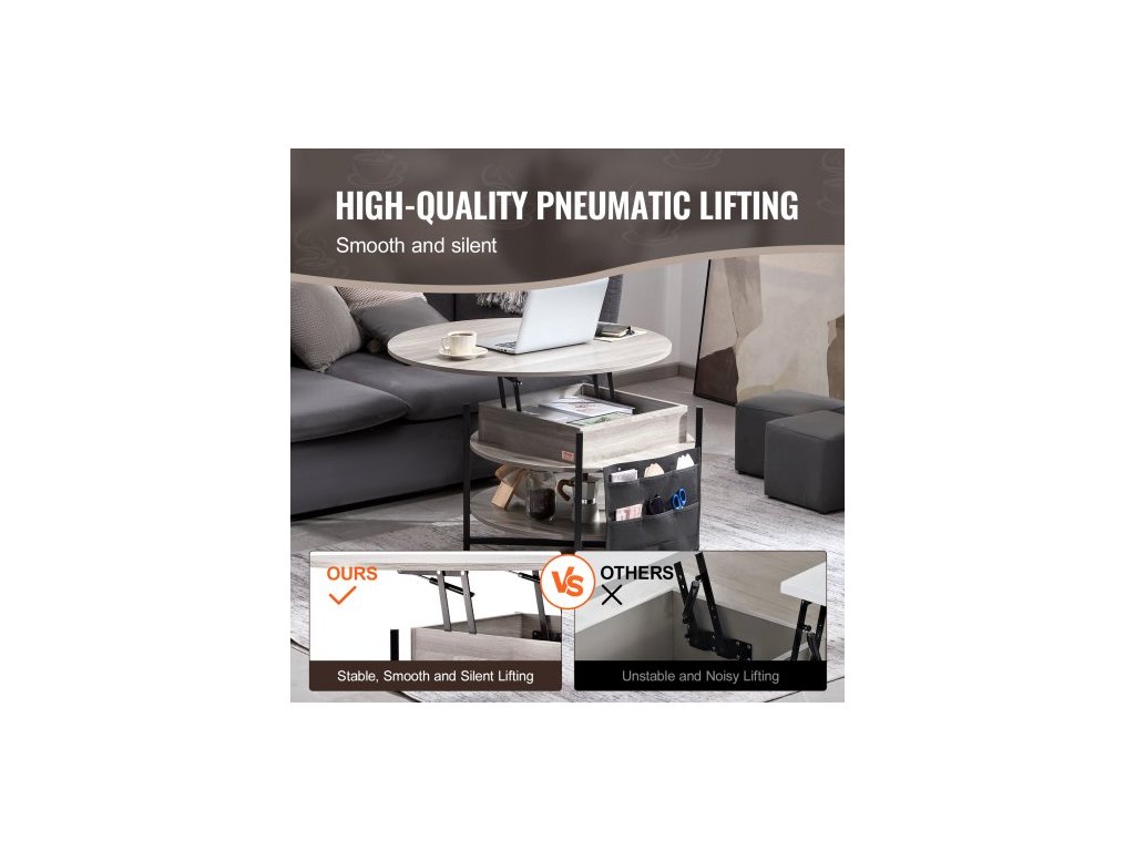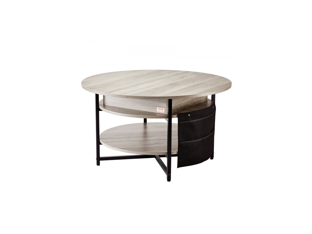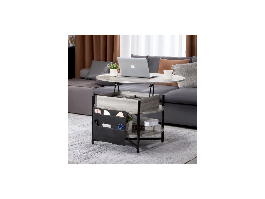 Konferenční stolek s výsuvnou deskou, kulatý konferenční stolek 35,3 palce s extra úložnými kapsami, výsuvný konferenční stolek do obývacího pokoje, bílýMultifunkční nastavitelný konferenční stolek