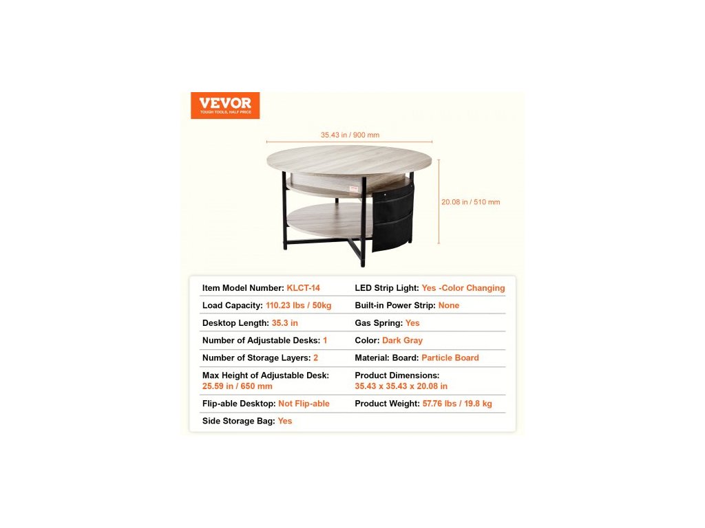 Počet nastavitelných desek: 1,Otočná deska: Neotočit,Barva: Tmavě šedá,Plynová pružina: Ano,Boční úložný vak: Ano,Materiál: Deska: Dřevotříska,Vestavěný prodlužovací kabel: Žádný,Rozměry produktu: 35,43 x 35,43 x 20,08 palce / 90,0 x 900 x 510 mm,Okolní osvětlení: Žádné,Počet úložných vrstev: 2,Nosnost: 110,23 lbs / 50 kg,Číslo modelu položky: KLCT-14, Hmotnost výrobku: 57,76 liber / 19,8 kg, Délka stolu: 35,3 palce, Maximální výška nastavitelného stolu: 25,59 palce / 650 mm