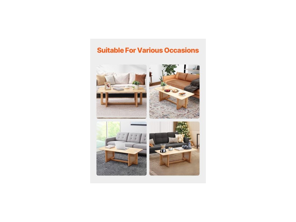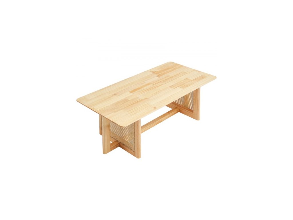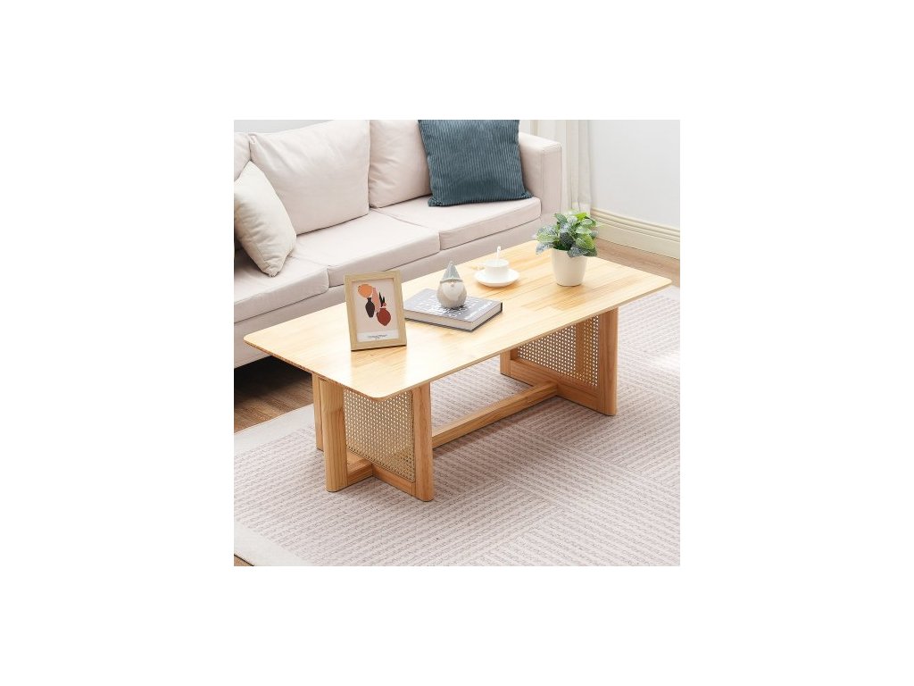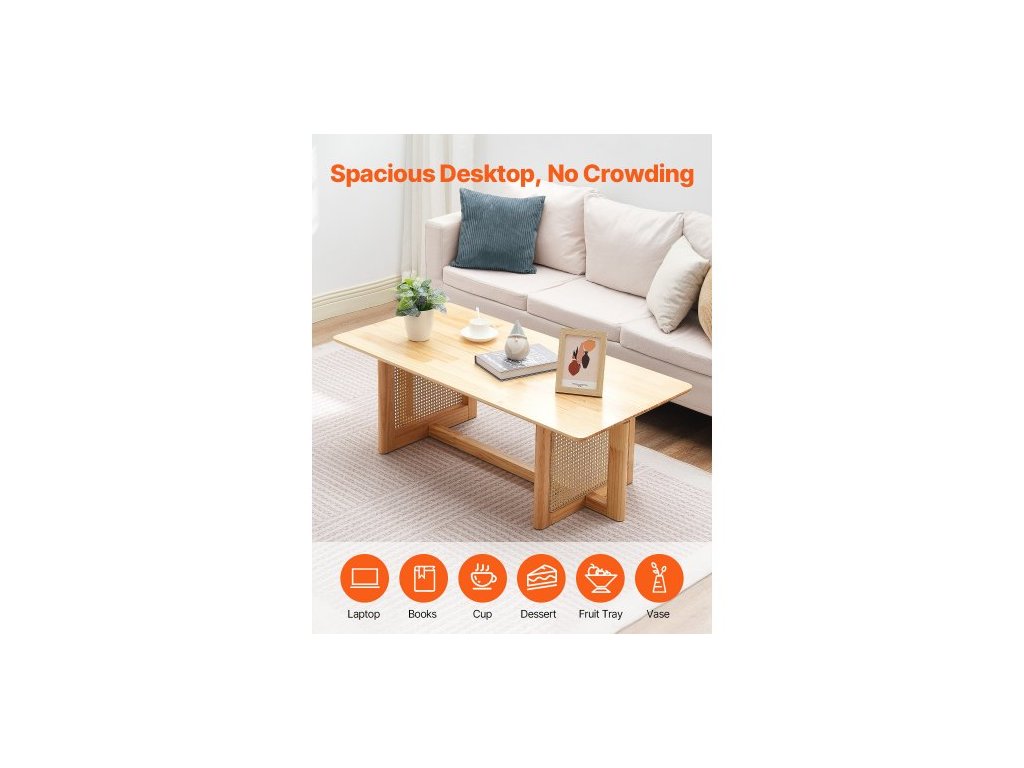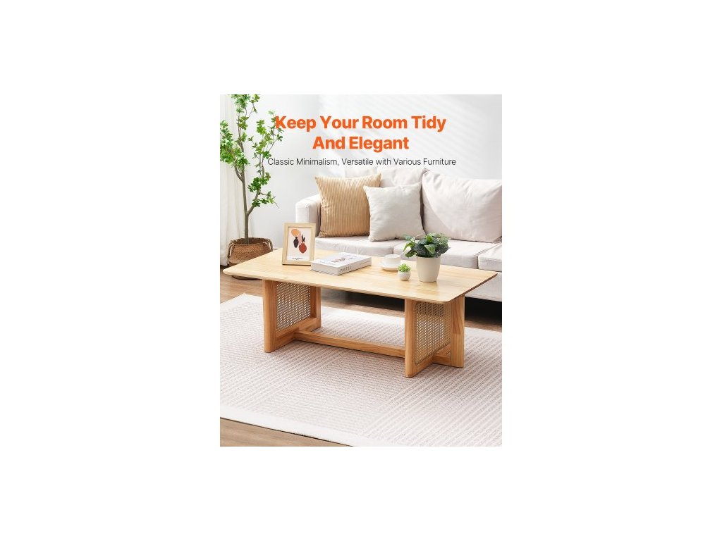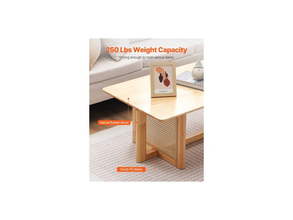 Konferenční stolek z ratanu, obdélníkový konferenční stolek z ratanu a tkaného dřeva s deskou z kaučukovníku, moderní boho konferenční stolek s úložným prostorem o průměru 47 palců a nohami z přírodního dřeva, do obývacího pokoje, ložnice a malých prostorKonferenční stolek z ratanu