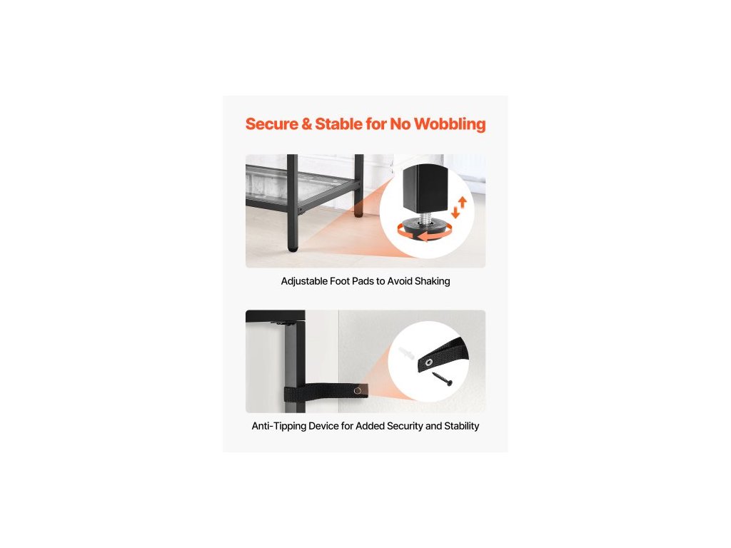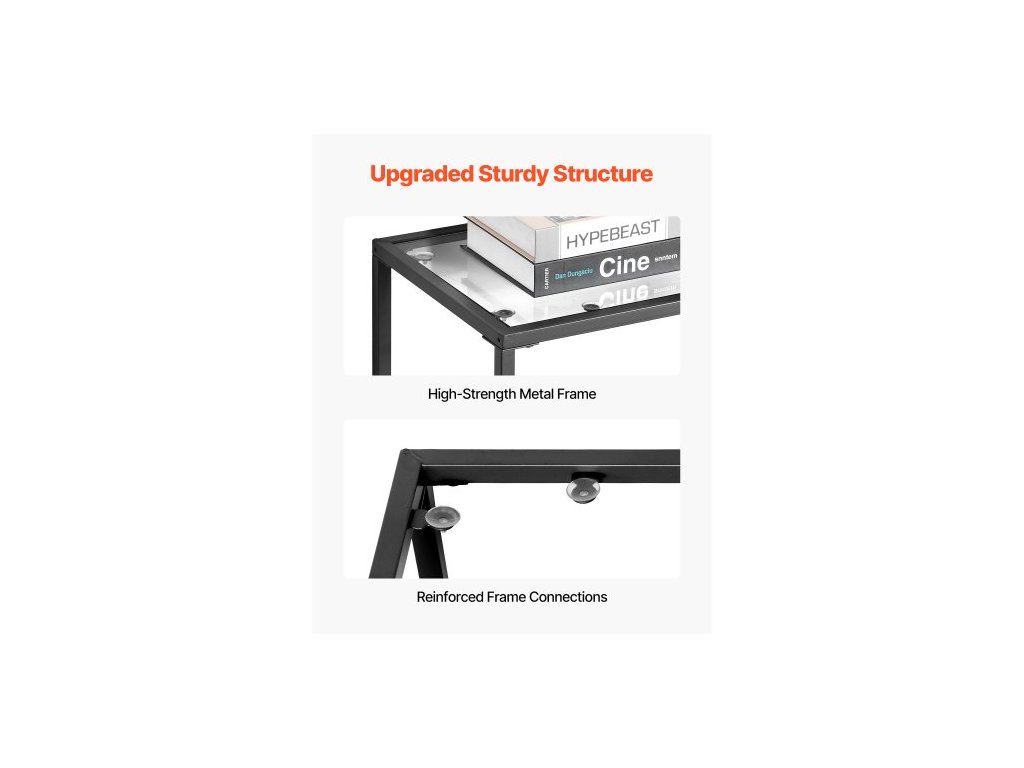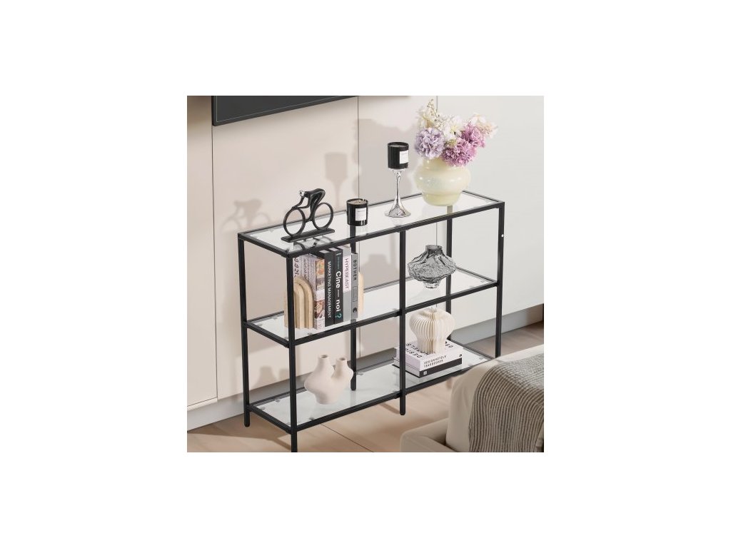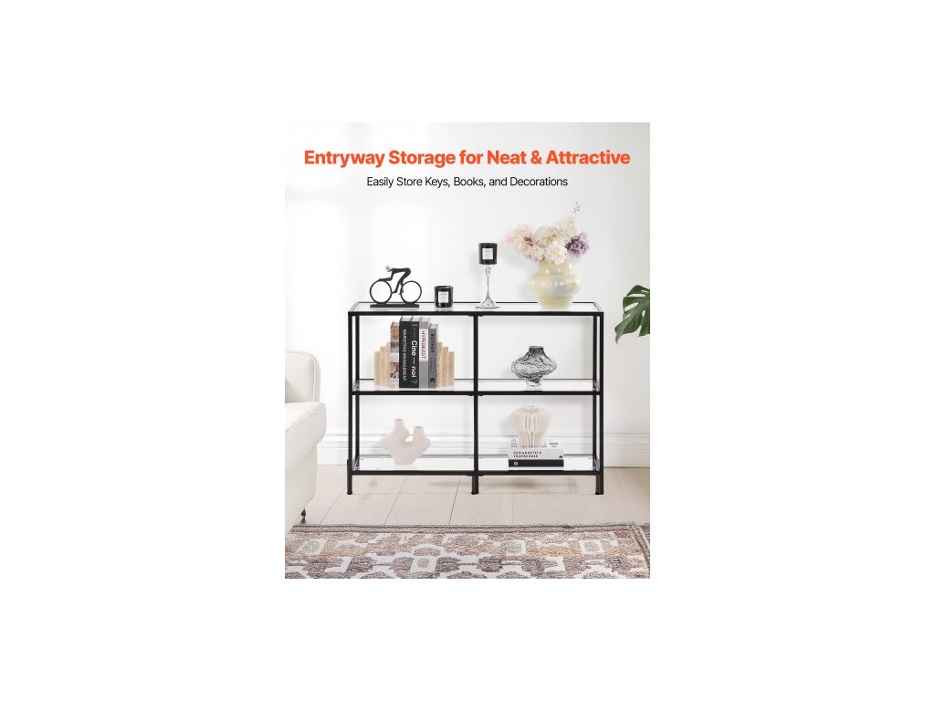 Konzolový stolek se 3 úrovněmi ze skla, moderní obdélníkový odkládací stolek k pohovke s deskou z tvrzeného skla a železnými nohami, zlatý konzolový stůl s pojistkou proti převrácení do obývacího pokoje, chodby, vstupní haly, předsíně, černáMaximální úložný prostor