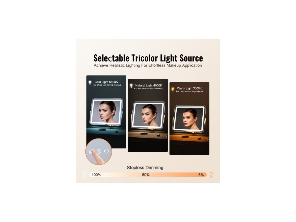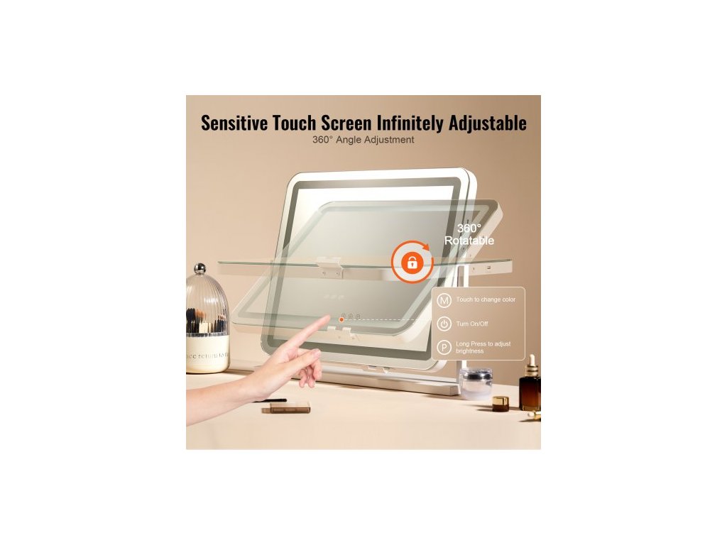 Kosmetické zrcátko s osvětlením, třemi barevnými režimy osvětlení, podsvíceným kosmetickým LED zrcátkem a 5násobným zvětšením, USB portem, dotykovým ovládáním Smart Touch, otáčením o 360° (21,7x17,7 palce, bílé)