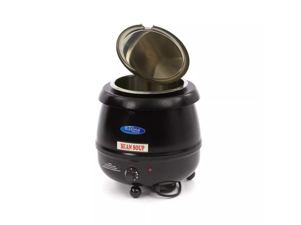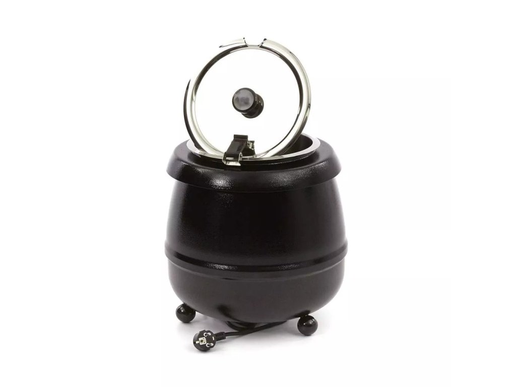 Víko konvice na polévku má praktickou prohlubeň na lžíci, abyste mohli mít naběračku na polévku vždy u konvice. Lžíce se tak nezahřívá a nesklouzává do polévky. Vnitřní nádoba i odklápěcí víko jsou vyrobeny z nerezové oceli. Díky odolnému práškovému lakování a konstrukci s vodní lázní vydrží tato konvice na polévku velmi dlouho. Termostat je nastavitelný na teploty v rozmezí 30 až 900C. Světelný indikátor ukazuje, kdy má konvice na polévku správnou teplotu. Standardně jsou dodávány různé štítky, které označují druh podávaného jídla na polévkové konvici.