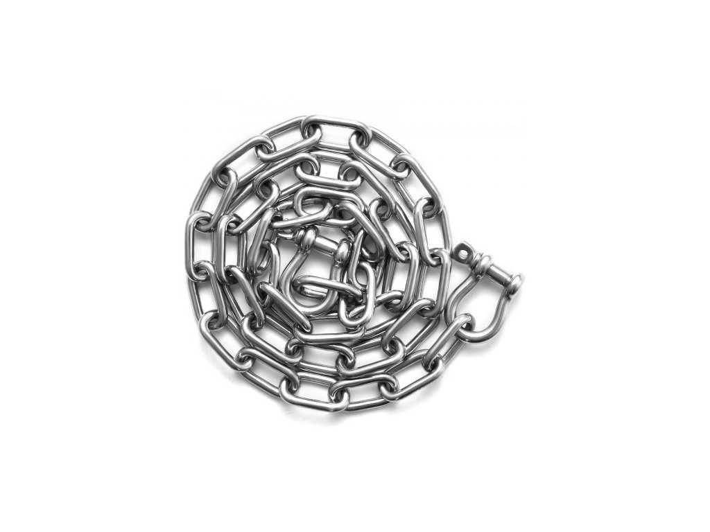 Nosnost: 1700 lbs/771 kg,Číslo modelu položky: SH006-TZ-1/4"*1.2M,Povrchová úprava: Leštěná,Hmotnost výrobku: 2.14 lbs/0.97 kg,Materiál: nerezová ocel 316,Délka řetězu: 4 ft/1.2 m,Mezní nosnost: 4800 lbs/2177 kg,Průměr řetězu: Φ0.24 palce/6 mm