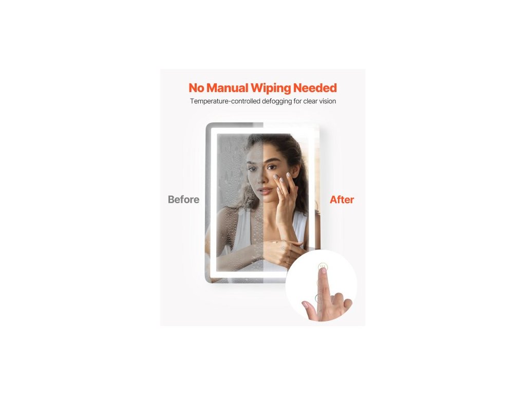 LED koupelnové zrcadlo, 50 x 70 cm LED koupelnové zrcadlo s předním a zadním podsvícením, paměťové zrcadlo s úpravou proti zamlžování a světly, plynule stmívatelné koupelnové zrcadlo ve 3 barvách, nástěnnéLED korálky s vysokou hustotou