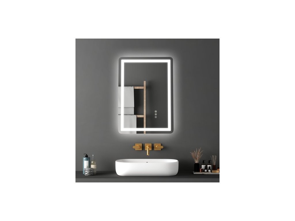 Koupelnové zrcadlo LED, 50 x 70 cm LED koupelnové zrcadlo s předním a zadním podsvícením, zrcadlo s paměťovou funkcí a světly proti zamlžování, plynule stmívatelné koupelnové zrcadlo ve 3 barvách, nástěnné