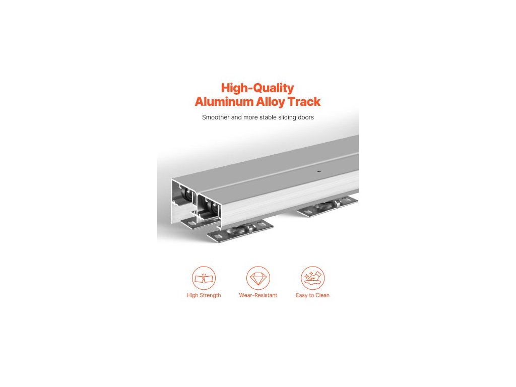 Kování pro obchvatné dveře , sada kování pro vysoce odolné obchvatné posuvné dveře, sada kování pro posuvné dveře skříně z hliníkové slitiny pro systém se 2 dveřmi, pasuje na tloušťku dveří 1 3/8" - 1 3/4", snadná instalaceSada kování pro obchvatné posuvné dveře 6 stop
