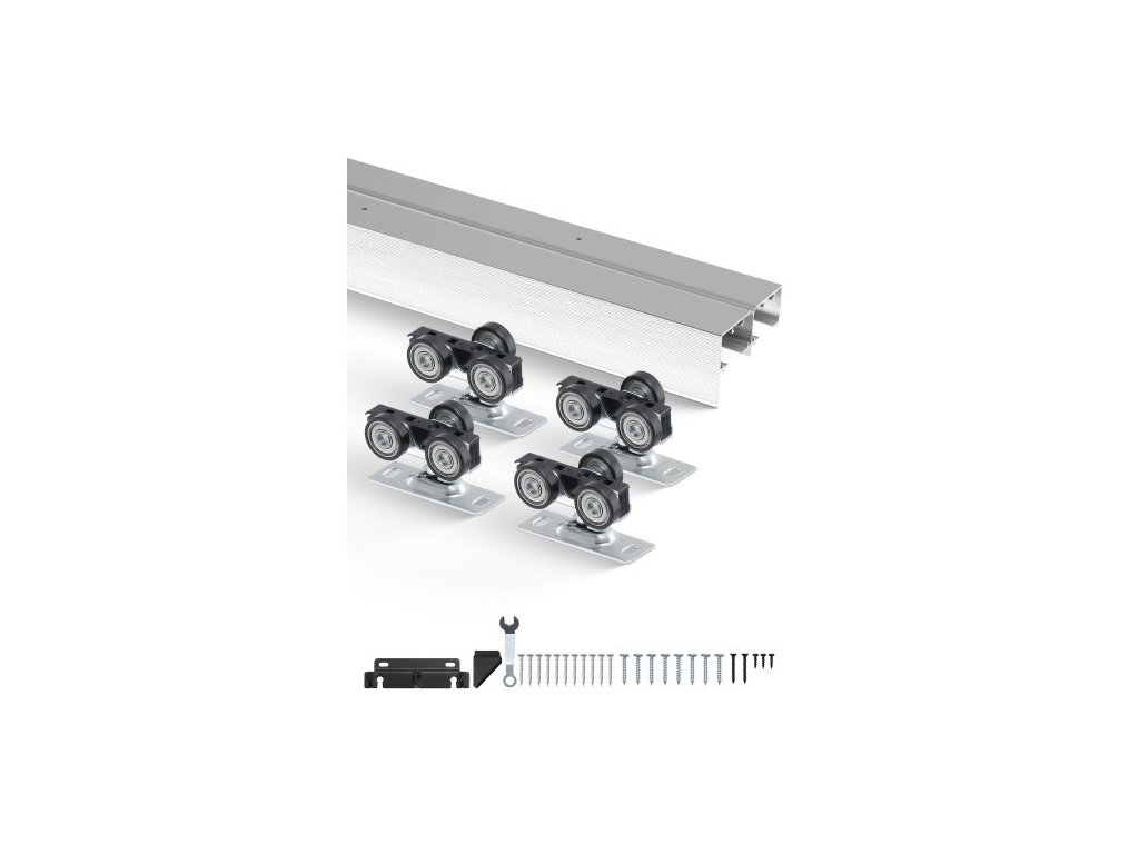 Kování pro obtokové dveře , sada kování pro posuvné dveře o délce 6 stop, sada kování pro posuvné dveře z hliníkové slitiny pro 2dveřový systém, vhodné pro tloušťku dveří 1 3/8" - 1 3/4", snadná instalace