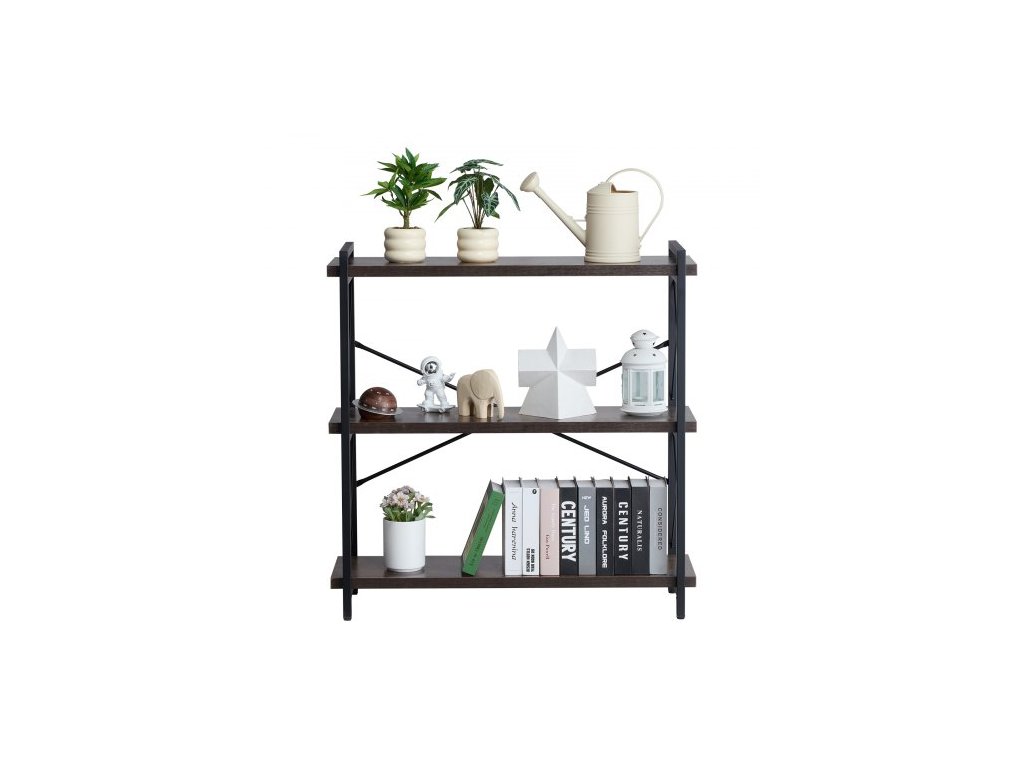 Kovová knihovna , 3patrová průmyslová knihovna, malá rustikální úložná knihovna s otevřenými policemi, volně stojící vintage police, úložný regál, do obývacího pokoje, ložnice a kancelářeSnadné otevřené úložné prostory