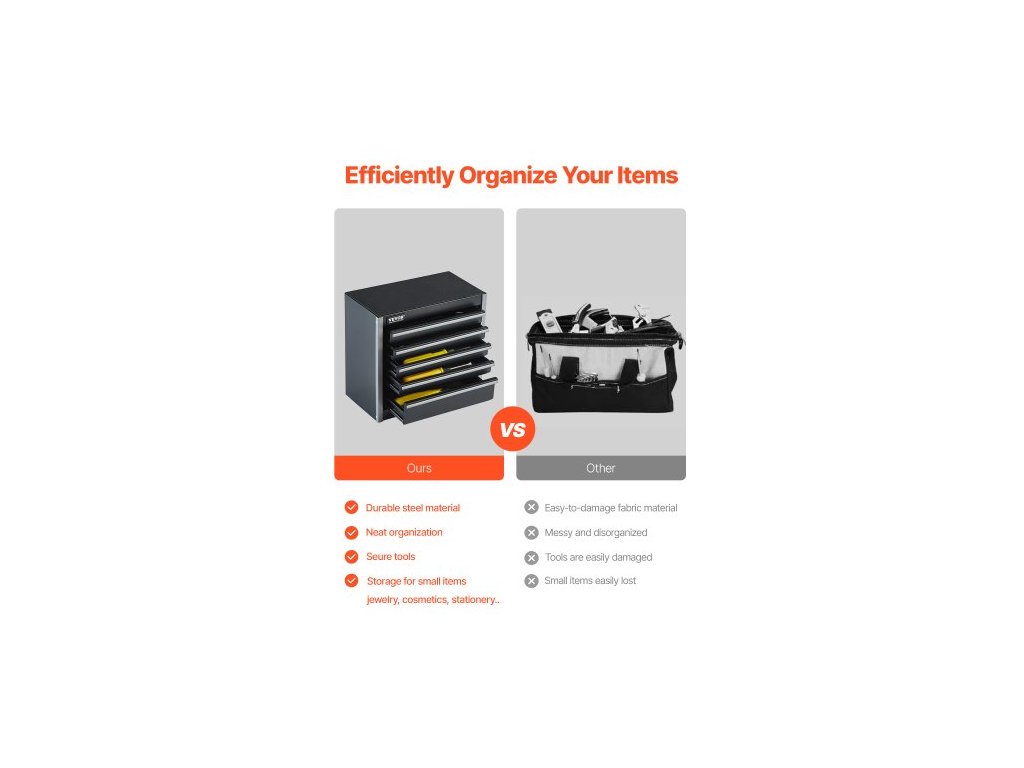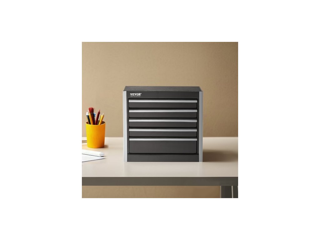 Kovová skříň na nářadí , 8,6 palce, přenosná kovová skříň na nářadí s 5 zásuvkami, malá skříň na nářadí s EVA vložkami a PP nožičkami, odolná ocel s otevíráním s kuličkovými ložisky a práškovým lakováním, černáMini vícevrstvá skříň na nářadí