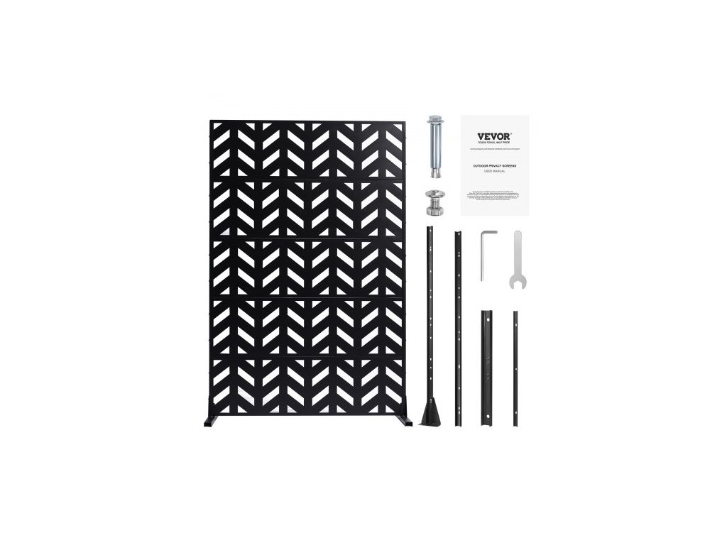 Kovová zástěna , šířka 122 cm x výška 183 cm, venkovní zástěny na ochranu soukromí, 5dílná, volně stojící venkovní dělič se stojanem, dekorativní zahradní ocelový plot na ochranu soukromí pro balkon, terasu, vnitřní místnost, černáKrásná