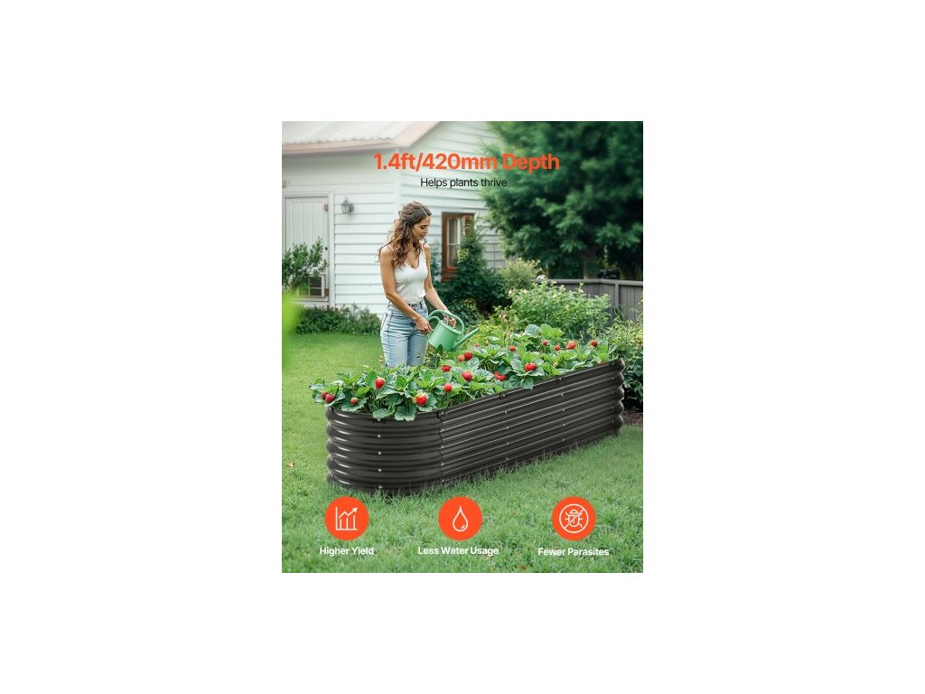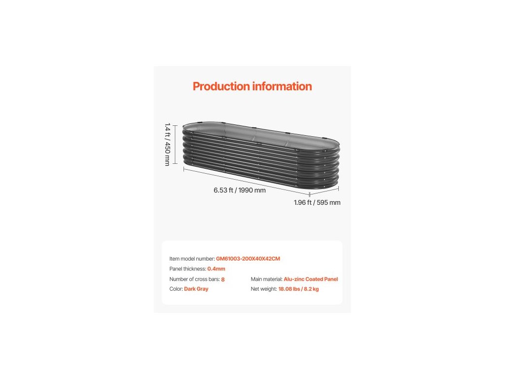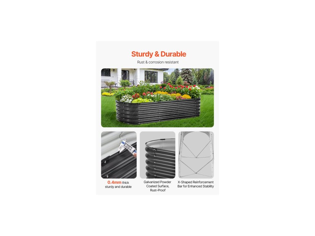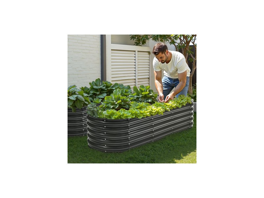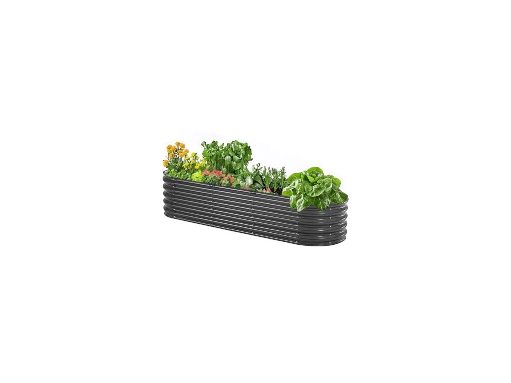Kovový vyvýšený záhon , venkovní pozinkovaný květináč 6,53 x 1,96 x 1,4 stopy, otevřené dno, velký oválný vyvýšený záhon pro pěstování zeleniny, květin, bylin a sukulentů, tmavě šedýProstorná pěstební plocha