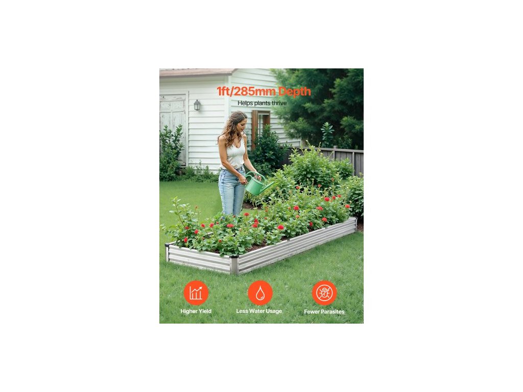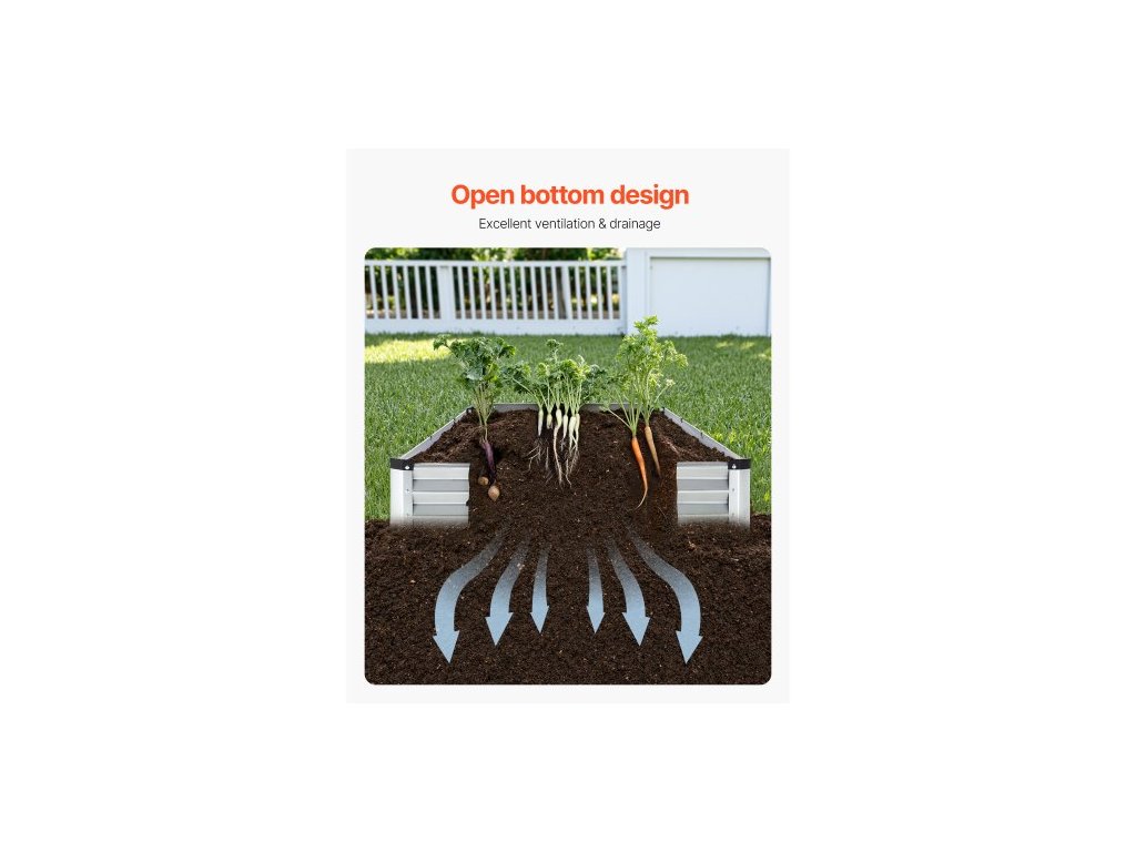 Kovový vyvýšený záhon , venkovní pozinkovaný květináč 30 x 12 x 30 cm, s otevřeným dnem, velký vyvýšený záhon pro pěstování zeleniny, květin, bylin a sukulentů, stříbrnáProstorná pěstební plocha