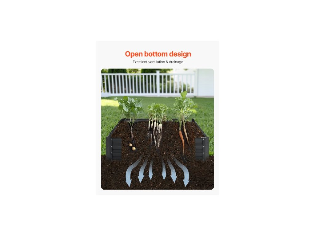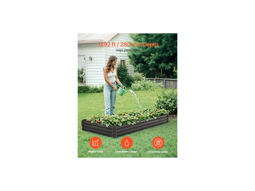 Vyvýšený kovový záhon , venkovní pozinkovaný květináč 8 x 4 x 1 stopy, s otevřeným dnem, velký vyvýšený záhon pro pěstování zeleniny, květin, bylin a sukulentů, tmavě šedýProstorná pěstební plocha