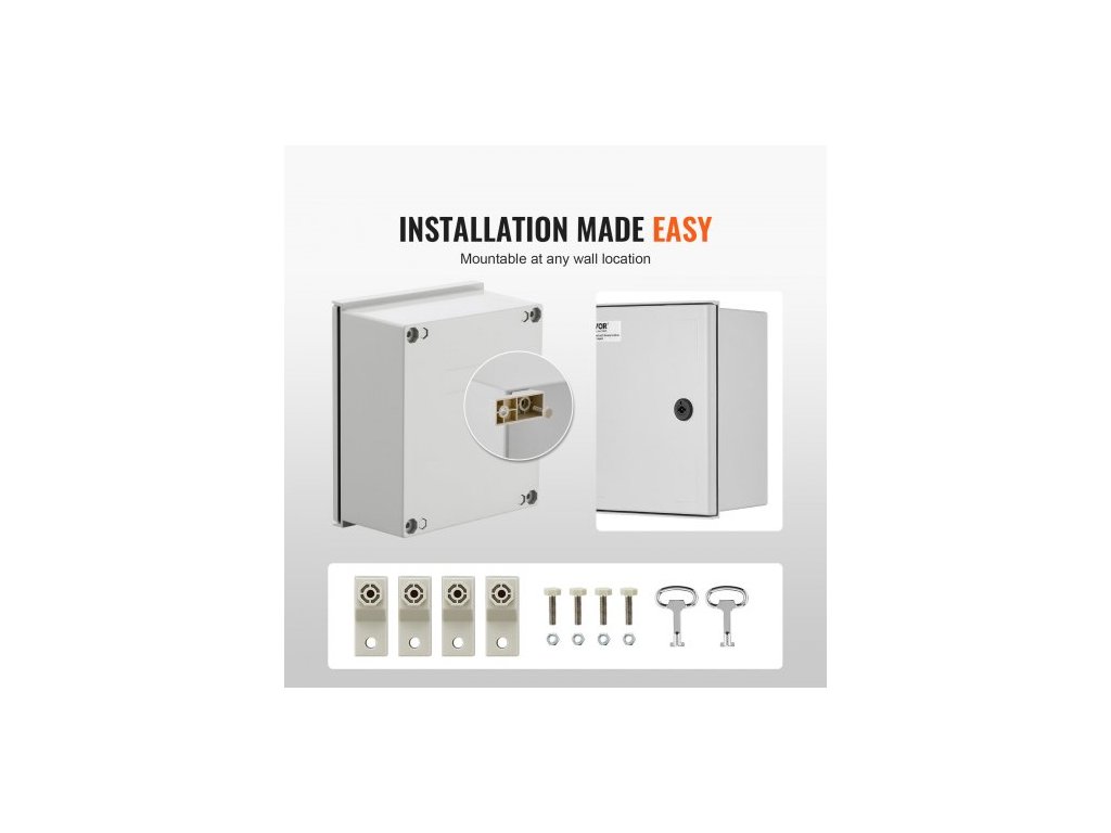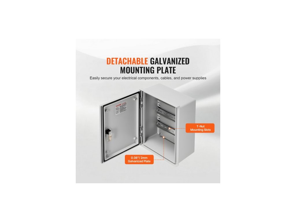 Vnější rozměry (V x Š x H): 11,8 x 9,8 x 5,5"/30 x 25 x 14 cm,Vnitřní rozměry (V x Š x H): 10,8 x 9,4 x 5,5"/27,5 x 24 x 14 cm,Montážní deska: Pozinkovaná zadní deska,Krytí IP: IP66,Materiál: SMC,Typ montáže: Nástěnná montáž,Čistá hmotnost: 7,72 lbs/3,5 kg,Použití: Vnitřní/venkovní, certifikace NEMA: NEMA typ 3, 3X