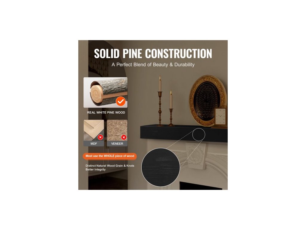 Krbová římsa , 122 cm x 20 cm x 13 cm, nosnost 22,7 kg, římsa z přírodního dřeva pro nadkrb, nástěnná plovoucí police ve venkovském stylu, ručně vyrobená krbová římsa pro nástěnnou dekoraci, espressoTeplé a elegantní