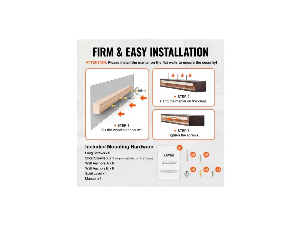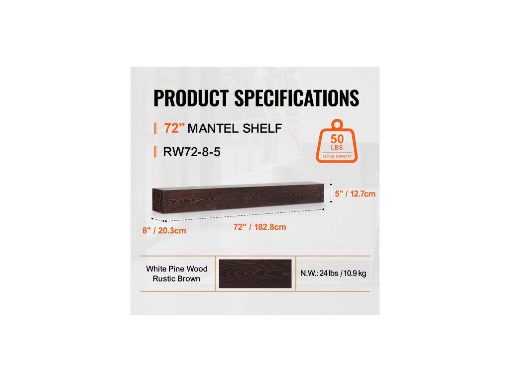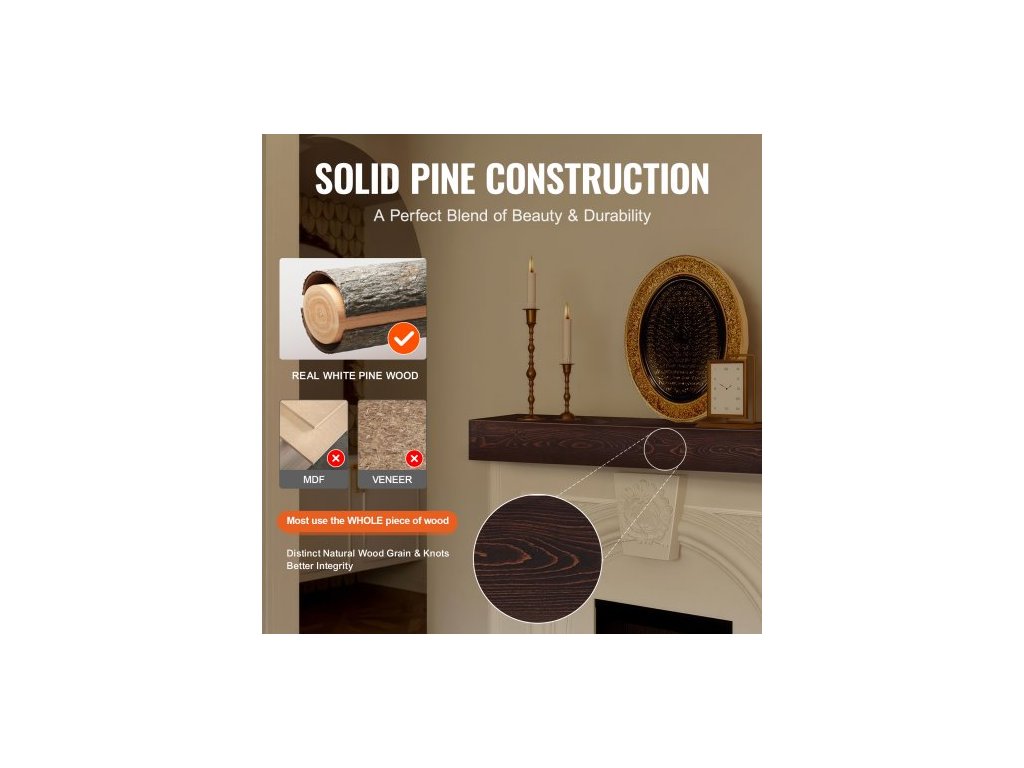 Krbová římsa , 183 cm x 20 cm x 13 cm, nosnost 22,7 kg, římsa z přírodního dřeva pro nadkrb, nástěnná plovoucí police ve venkovském stylu, ručně vyrobená krbová římsa pro nástěnnou dekoraci, rustikálně hnědáTeplá a elegantní