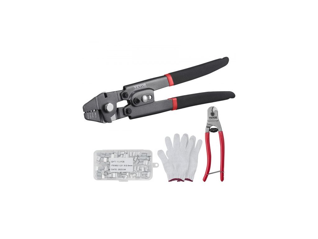Krimpovací nástroj , krimpovací nástroj na drátěná lana do průměru 2,2 mm, sada krimpovacích objímek s řezačkou kabelů a 160 ks hliníkových přezek, teflonový povlak, antikorozní krimpovací nástroj pro rybářské potřeby