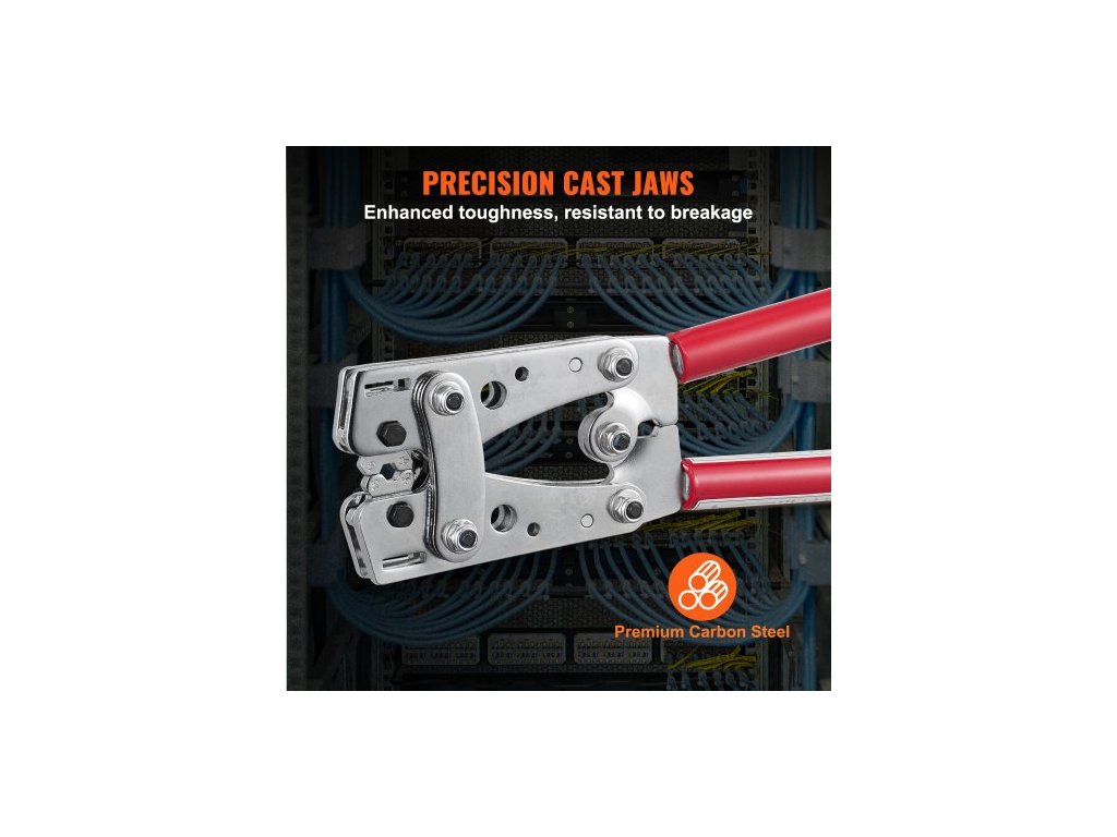 Krimpovací nástroj na bateriové kabelové koncovky , krimpovací kleště na bateriové koncovky 10-1/0AWG s 60 kusy hliníkových kroužkových konektorů, krimpovací matrice pro 6 velikostí vodičů, pro vysoce odolné kabelové koncovkyŠiroký rozsah krimpování