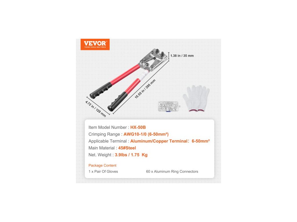 Čistá hmotnost: 3,9 lbs / 1,75 kg:,Použitelný terminál: Hliníkový/měděný terminál,Rozsah krimpování: AWG10-1/0 (6-50 mm²),Číslo modelu položky: HX-50B,Hlavní materiál: Ocel 45#