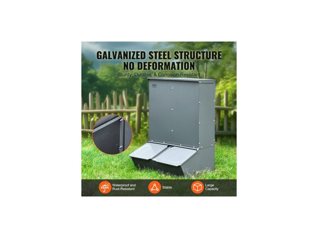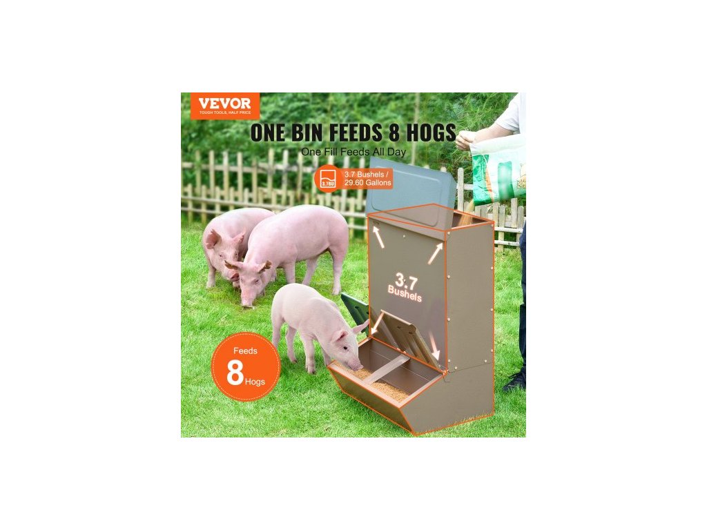 Číslo modelu položky: T1091, Kapacita krmení: 8 prasat, Rozměry: 600 x 500 x 840 mm/23,62 × 19,69 × 33,07 palce, Materiál: Pozinkovaná ocel, Kapacita obilí: 3,7 bušlů / 20 galonů, Hmotnost: 16 kg/35,27 liber