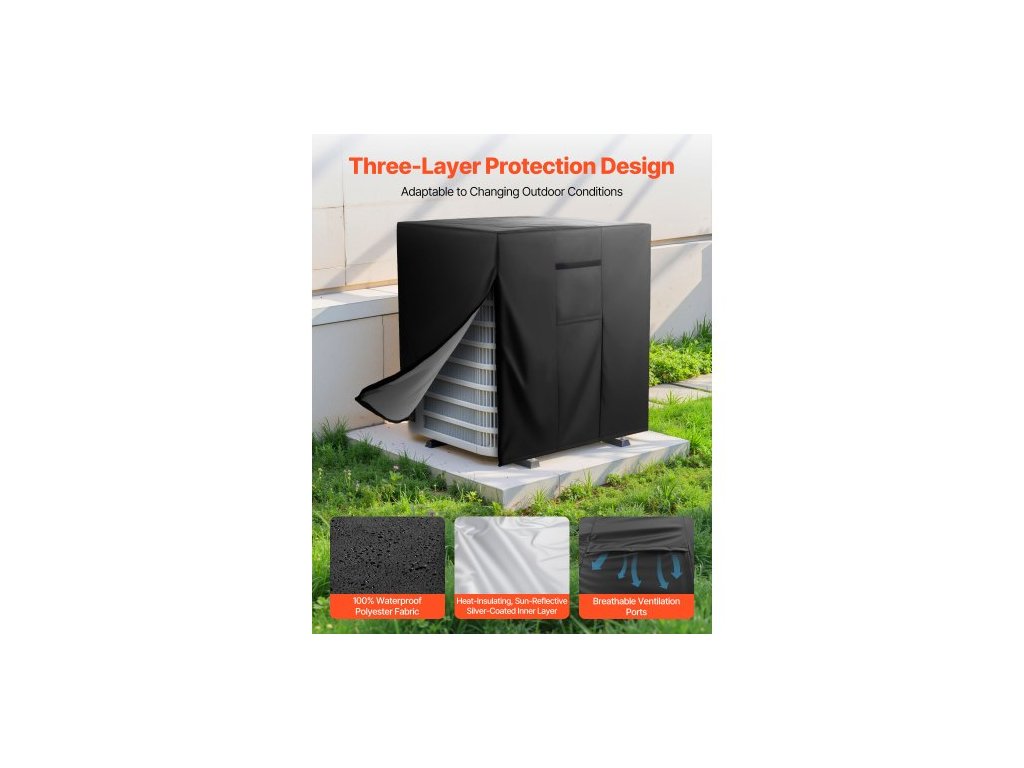 Kryt klimatizace , 960 x 960 x 1010 mm Kryt klimatizační jednotky, třívrstvý, nepromokavá polyesterová tkanina, síťované větrání, univerzální ochranný kryt pro venkovní klimatizační jednotku, černýKryt venkovní klimatizace