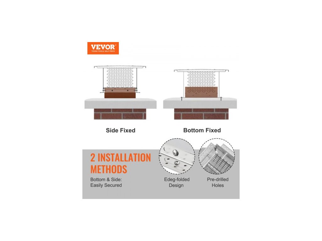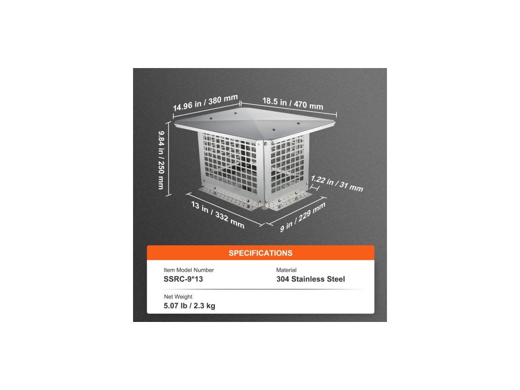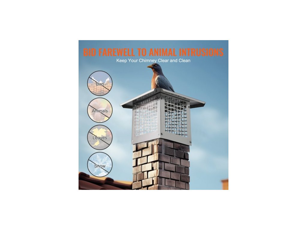 Kryt komína 330,2 x 228,6 mm, nerezová ocel 304, nesklopný, praktické příslušenství a snadná instalace, pasuje na síťové kryty kouřovodů i mimo hliněné šindele, stříbrnáVylepšený materiál