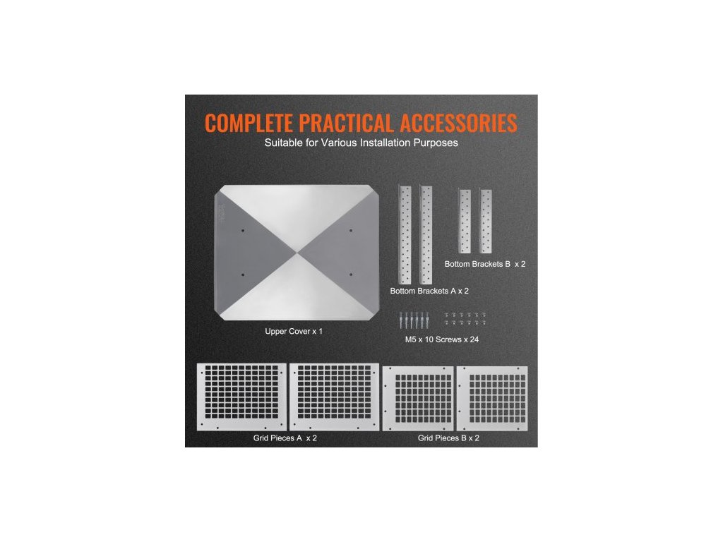 Rozměry panelu A: 13,07" x 9,84" x 0,02" / 332 x 250 x 0,6 mm,Rozměry položky (D x Š x V): 18,58" x 15" x 9,84" / 472 x 381 x 250 mm,Čistá hmotnost (včetně veškerého příslušenství): 5,07 lbs / 2,3 kg,Hrubá hmotnost (včetně veškerého příslušenství a obalu): 6,61 lbs / 3 kg, Číslo modelu položky: SSRC-9*13, Rozměry horního panelu: 14,96" x 18,5" x 0,02" / 380 x 470 x 0,6 mm, Materiál: nerezová ocel 304, Rozměry panelu B: 90,39" x 9,84" x 0,02" / 2296 x 250 x 0,6 mm