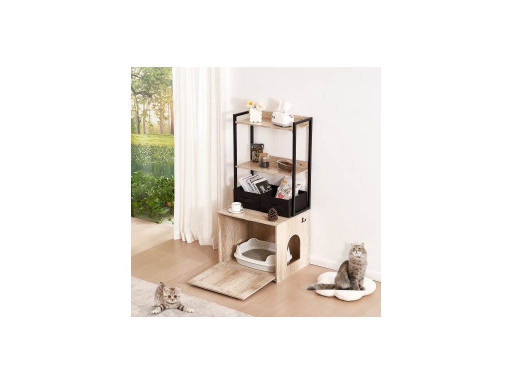 skříňka na kočičí toaletu, skrytý nábytek na kočičí toaletu se 2 úložnými policemi a 2 koši, dřevěná kočičí toaleta do interiéru, skříňka na kočičí toaletu se hodí do většiny kočičích toalet, 23,6"D x 19,7"Š x 50"V, přírodníPohodlná a prodyšná