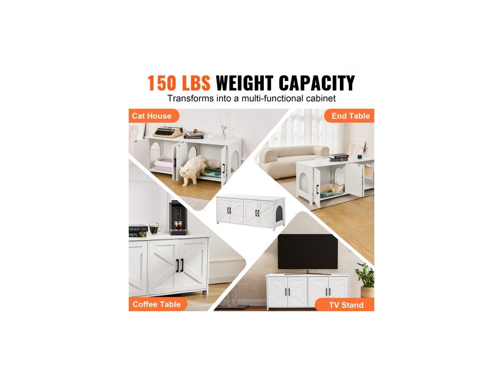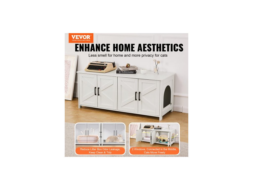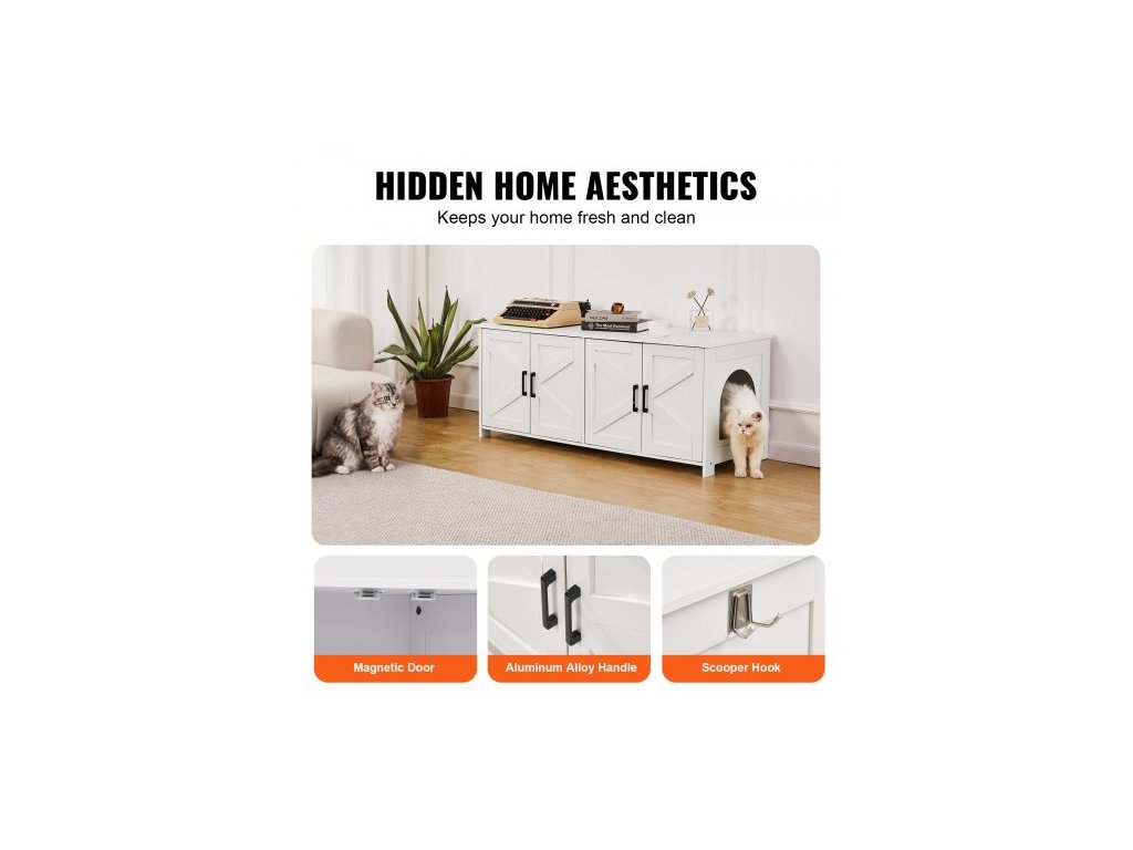 skříňka na kočičí toaletu pro 2 kočky, skrytý nábytek do toalety s dvojitými místnostmi, dřevěná skříňka na kočičí toaletu se hodí do většiny kočičích toalet, 122,4 cm D x 46,5 cm Š x 49,7 cm V, bíláZkrášlete si domácí prostředí