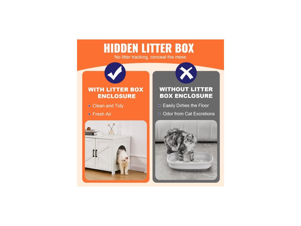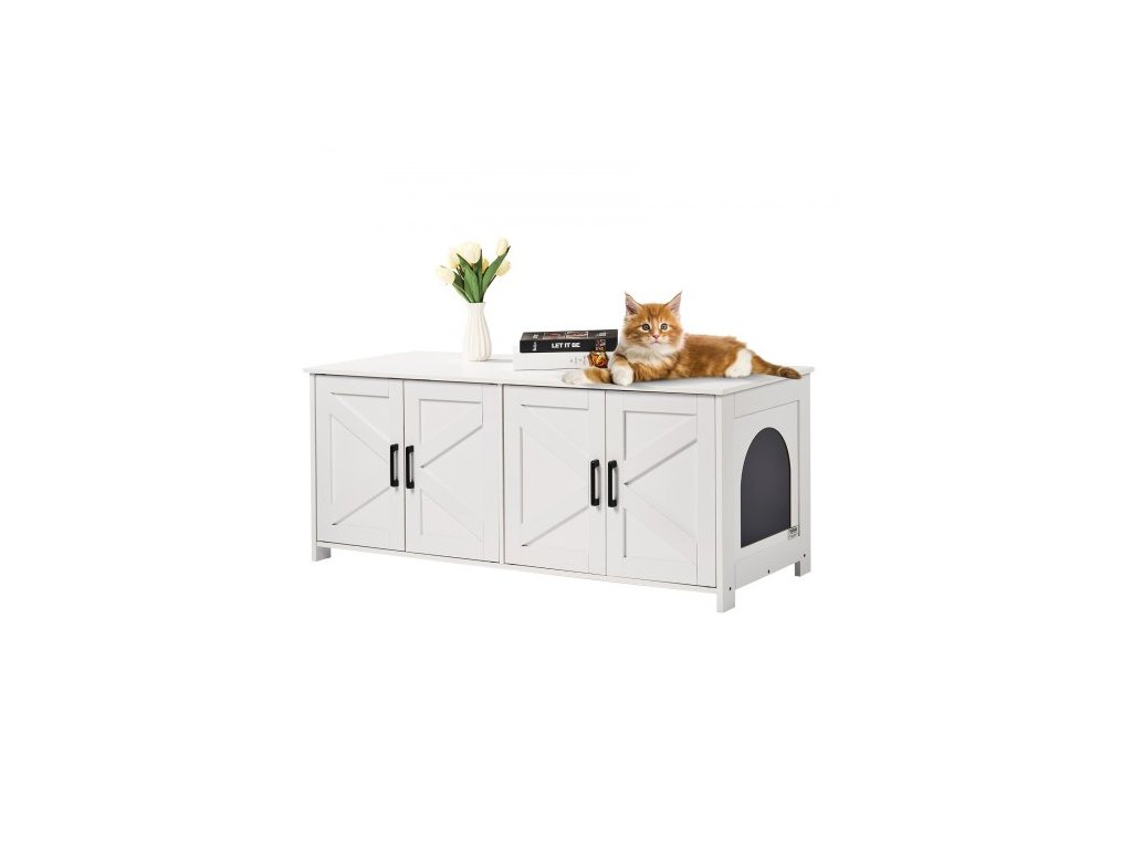 kryt na kočičí toaletu pro 2 kočky, skrytý nábytek do toalety s dvoulůžkovými pokoji, dřevěná skříňka na kočičí toaletu se hodí do většiny kočičích toalet, 122,5 cm D x 46,5 cm Š x 49,7 cm V, bílá