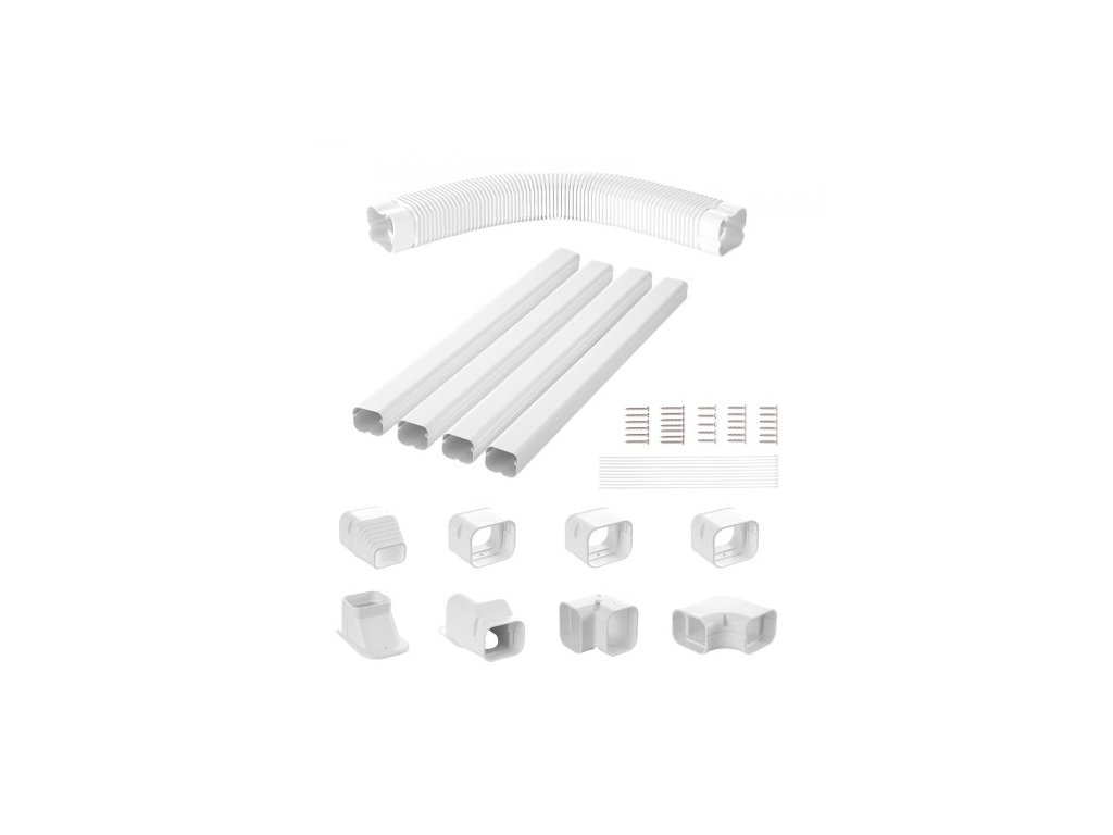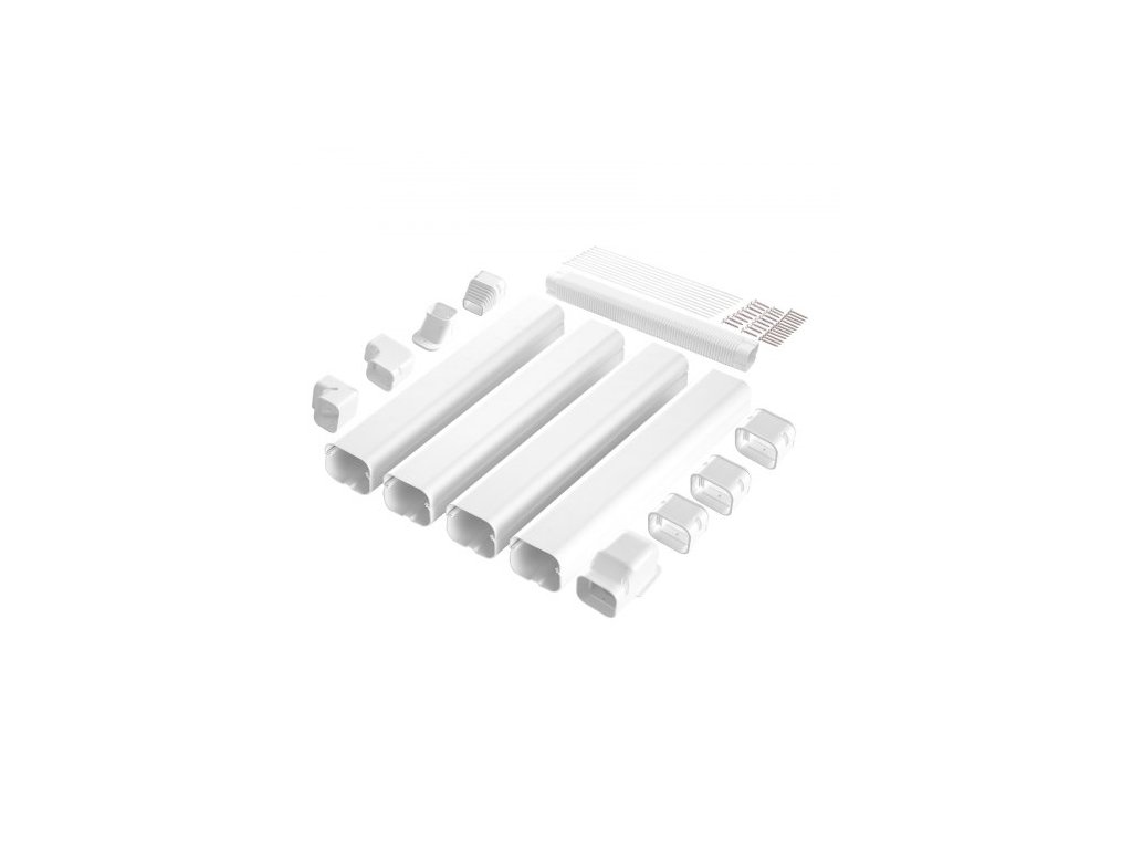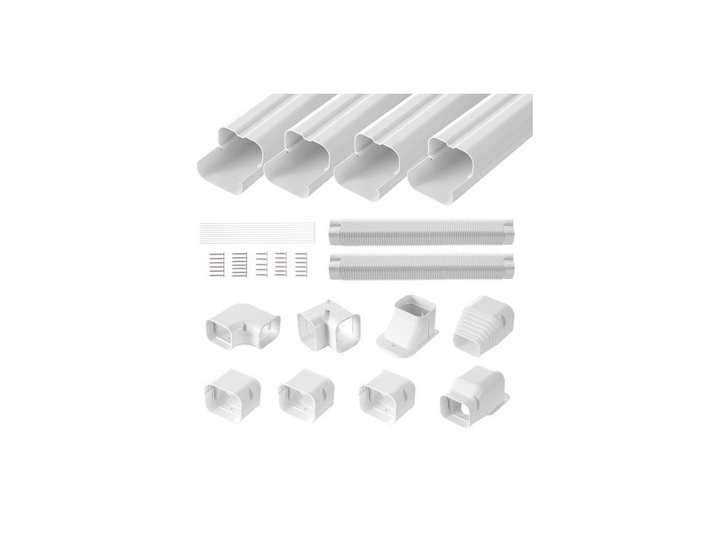 Kryt Mini Split Line Set 76,2 mm Š 5350 mm D, Dekorativní PVC kryt potrubí pro klimatizaci se 4 rovnými potrubími a kompletními komponenty, snadná instalace, natíratelný pro tepelná čerpadla, bílýKompletní sada příslušenství
