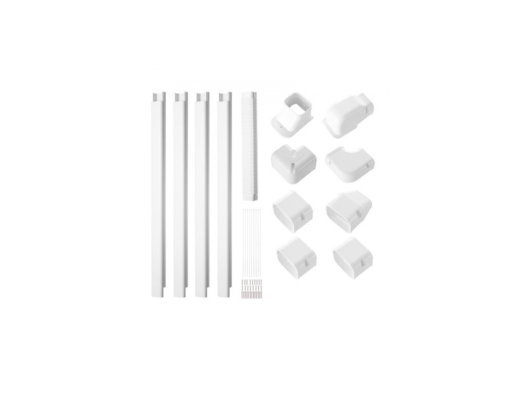 Kryt potrubí Mini Split Line Set 76,2 mm Š 5350 mm D, dekorativní PVC kryt potrubí pro klimatizaci se 4 rovnými kanály a kompletními komponenty, snadná instalace, natíratelný pro tepelná čerpadla, bílý