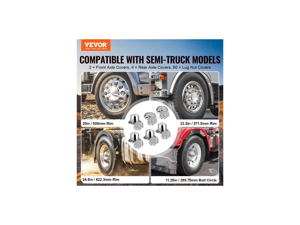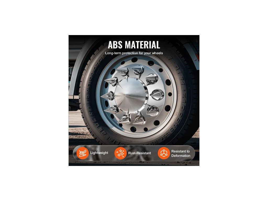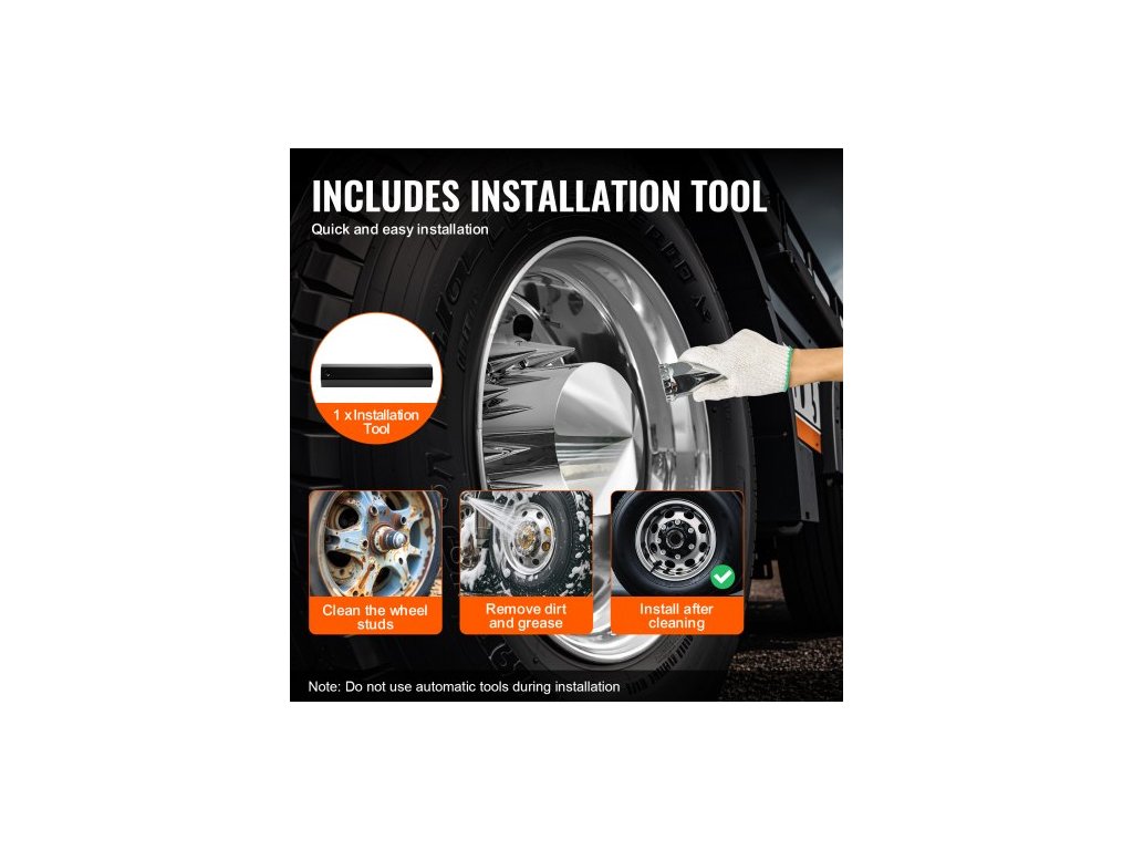 Kryty kol pro zadní a přední nápravu, kryty nápravy s hroty pro návěsy, kryty matic kol z ABS odolné proti korozi, univerzální uchycení, součástí balení je montážní nástroj, sada 2 krytů nábojů pro přední a 4 kryty nábojů pro zadní nápravuVysoká kompatibilita