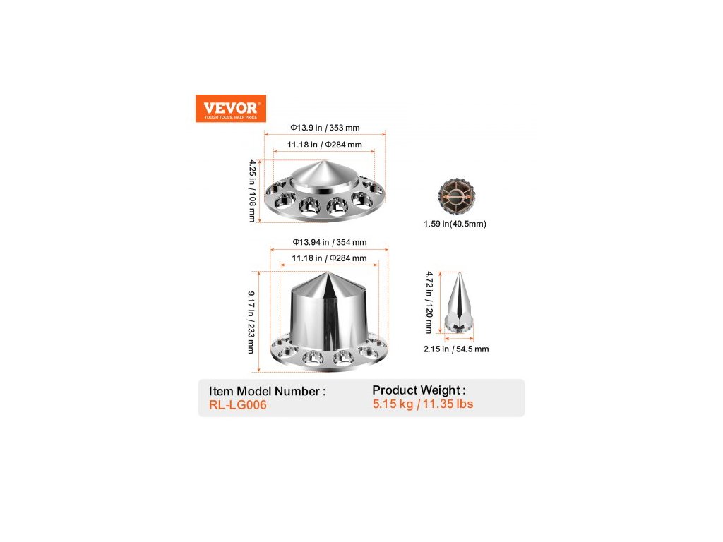 Rozměry krytu zadní nápravy: Φ354x233 mm / Φ13,94x9,17 palce,Barva: Světle stříbrná,Číslo modelu položky: RL-LG006,Kompatibilní ráfky: 10děrové 20" / 508 mm, 22,5" / 571,5 mm, 24,5" / 622,3 mm, rozteč šroubů 11,25" (285,75 mm),Hmotnost výrobku: 5,15 kg / 11,3 lbs,Rozměry krytu přední nápravy: Φ353x108 mm / Φ13,90x4,25 palce, hlavní materiál: ABS