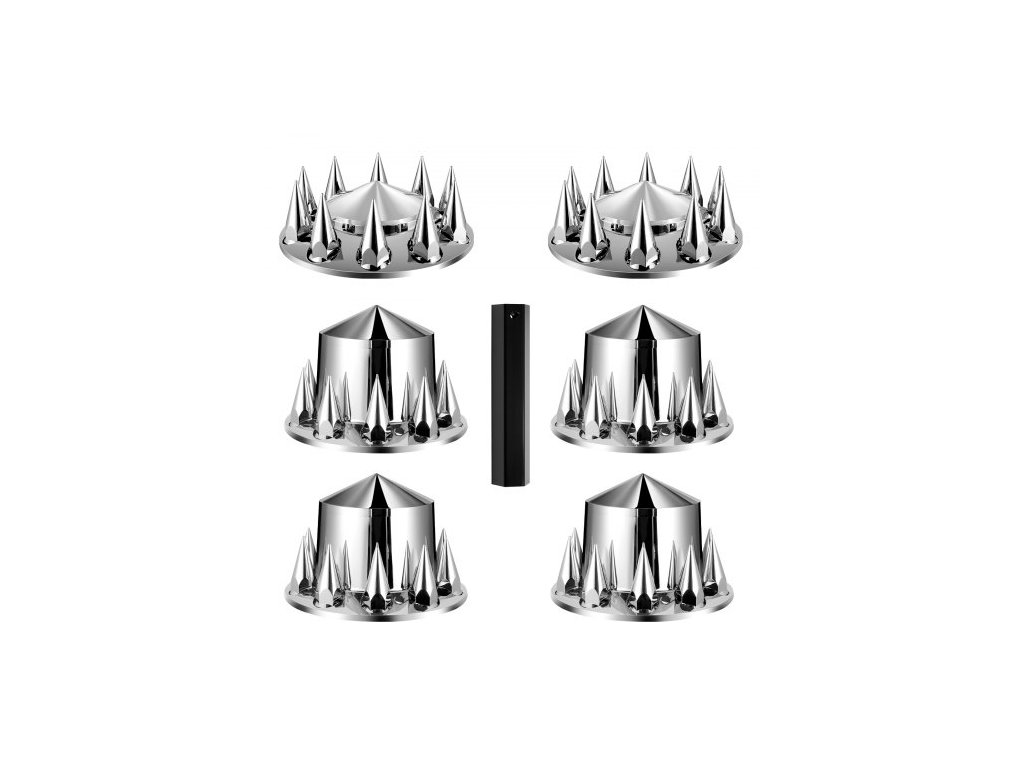 Kryty kol přední a zadní nápravy , kryty nápravy s hroty pro návěsy, kryty matic kol z ABS odolné proti korozi, univerzální provedení, montážní nástroj součástí sady, kombinovaná sada 2 krytů nábojů předních a 4 krytů nábojů zadní nápravy