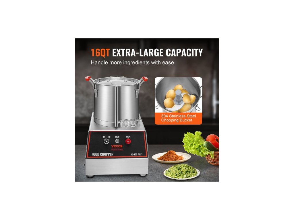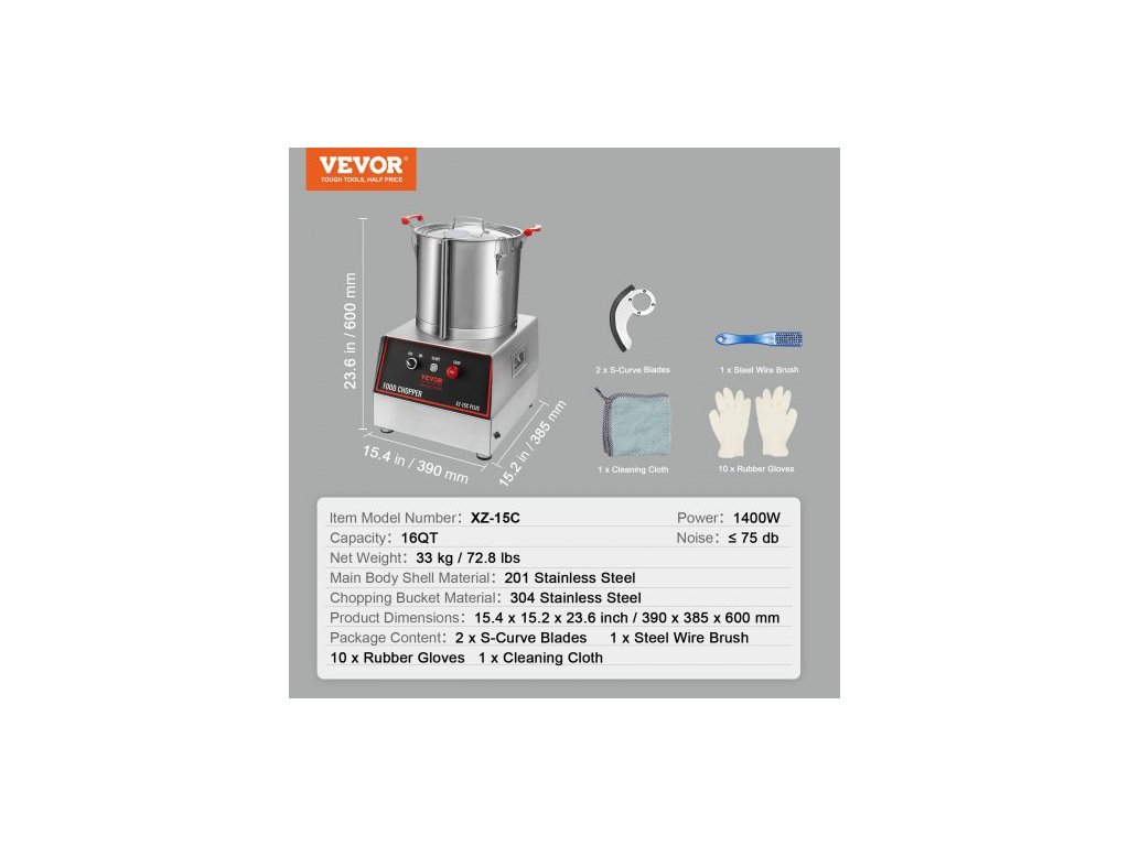 Kapacita: 16QT,Hlučnost: ≤ 70 db,Materiál sekací nádoby: Nerezová ocel 304,Číslo modelu: XZ-15C,Materiál pláště hlavního tělesa: Nerezová ocel 201,Čistá hmotnost: 33 kg / 72,8 lbs,Příkon: 1400 W