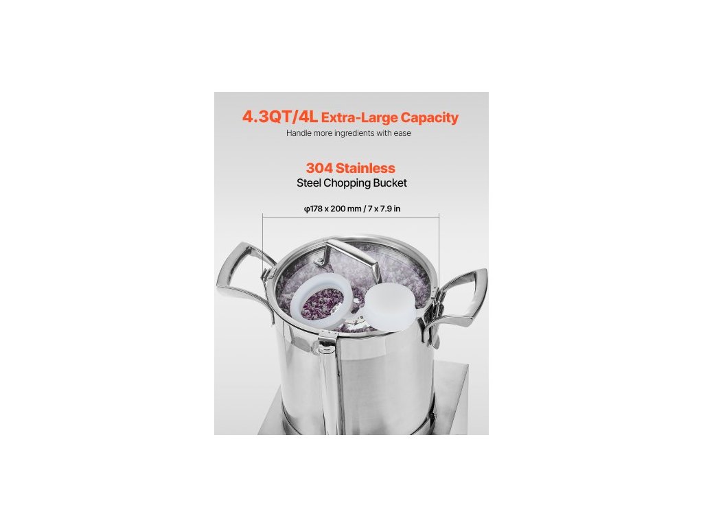 Kuchyňský robot a sekáček na zeleninu, 4l kuchyňský robot z nerezové oceli potravinářské kvality se 2 extra noži ve tvaru S, ideální pro sekání zeleniny, ovoce, obilovin a ořechůKuchyňský robot