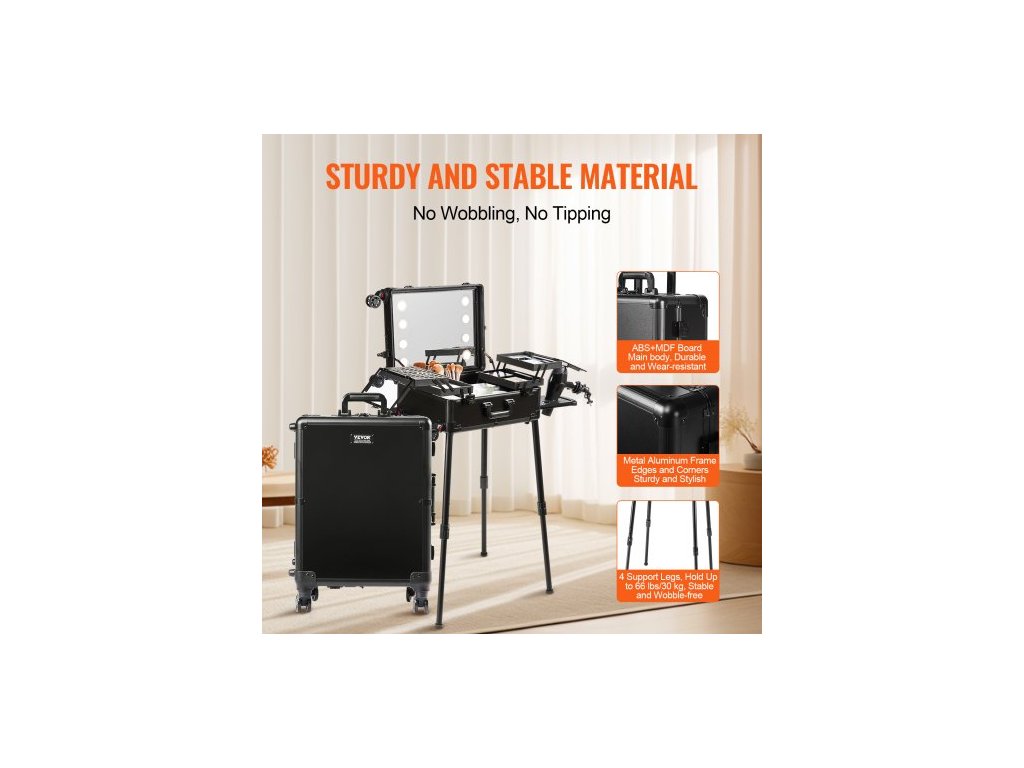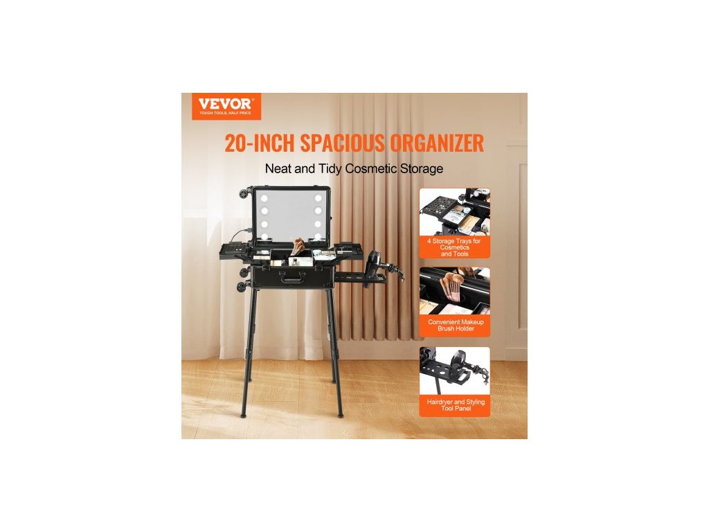 Kufřík na líčení se zámkem, osvětleným zrcadlem, 4 úložnými přihrádkami, držákem na štětce, cestovním organizérem na kosmetiku s otočnými kolečky, profesionálním kufříkem pro umělce, volně stojící kufříkem do studiaVelkokapacitní úložný prostor