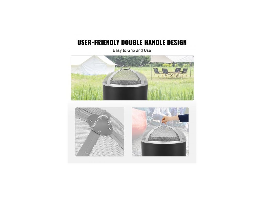 Kulatá zástěna na ohniště Spark, 27", zesílený kovový kryt z odolné oceli, venkovní víko na ohniště, snadno otevíratelné horní kulaté kryty s kruhovou rukojetí pro venkovní ohniště na terasu a zahraduVíko z nerezové oceli