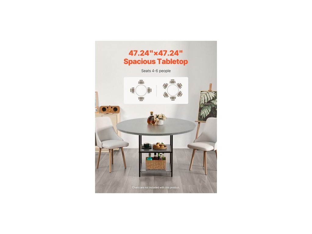 Kulatý jídelní stůl , dřevěný stůl o průměru 47 palců pro 4-6 osob, moderní kruhový jídelní nábytek, volnočasové stoly s úložnou policí a kovovými nohami, do domácí kuchyně a obývacího pokoje, šedý (pouze stůl)