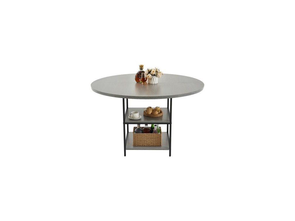 Kulatý jídelní stůl , dřevěný stůl 47 palců pro 4-6 osob, moderní kruhový jídelní nábytek, volnočasové stoly s úložnou policí a kovovými nohami, do domácí kuchyně, obývacího pokoje, šedý (pouze stůl)Estetický a praktický