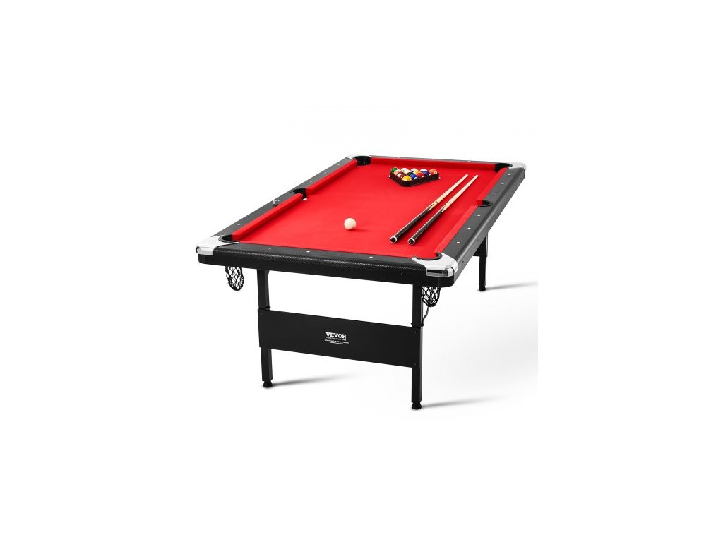 Kulečníkový stůl , 213 cm kulečníkový stůl, přenosný skládací stůl šetří místo, sada kulečníkových stolů obsahuje koule, tága, křídy a štětec, černý s červeným ubrusem, ideální pro herny pro rodiny, děti a dospěléSkládací kulečníkový stůl