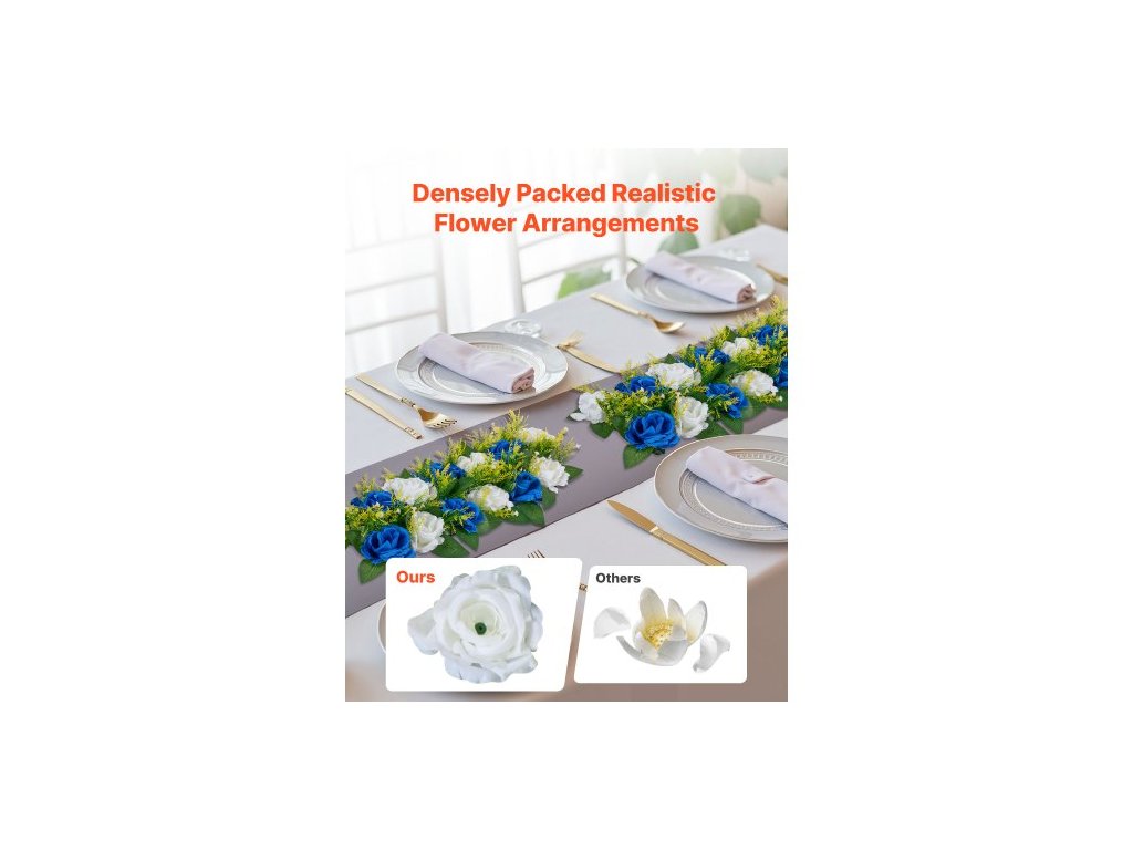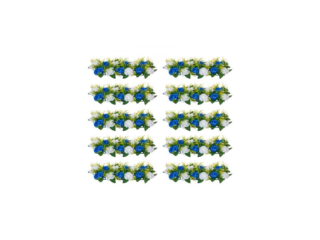 Květinová kytice 10 ks, 500 x 220 mm Umělé květinové koule Svatební dekorace na stůl, Aranžmá z umělých růží pro svatební dekoraci, dekorace domova, Modré a bílé růžePrémiové bujné květinové koule