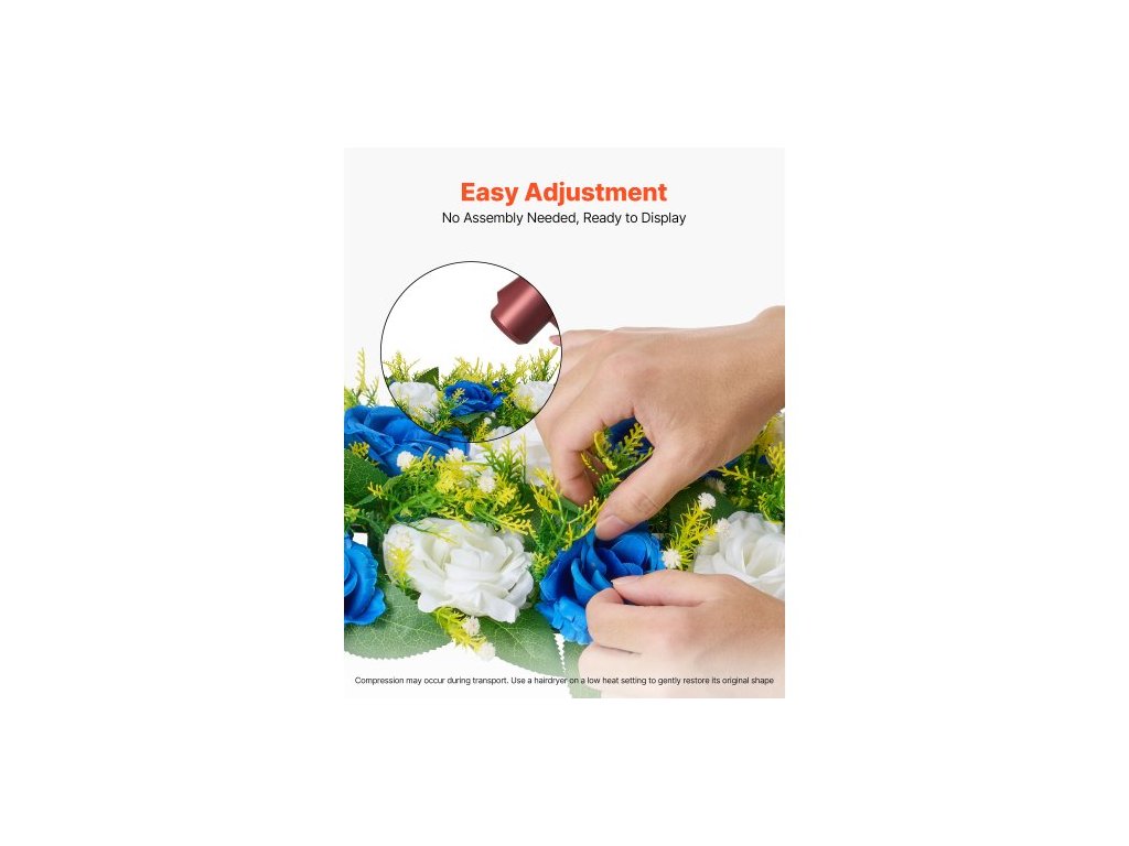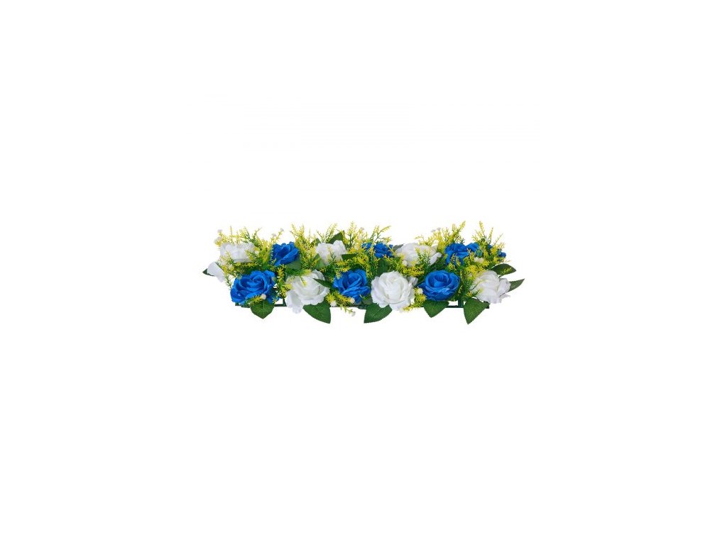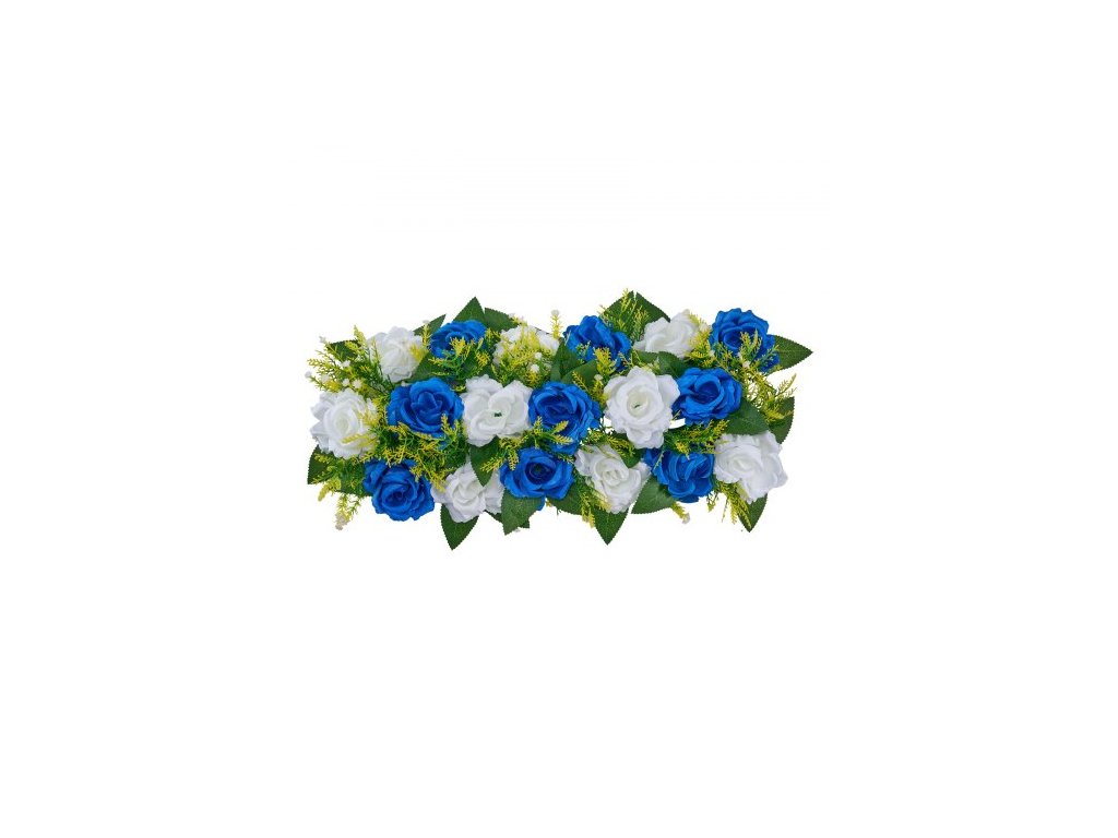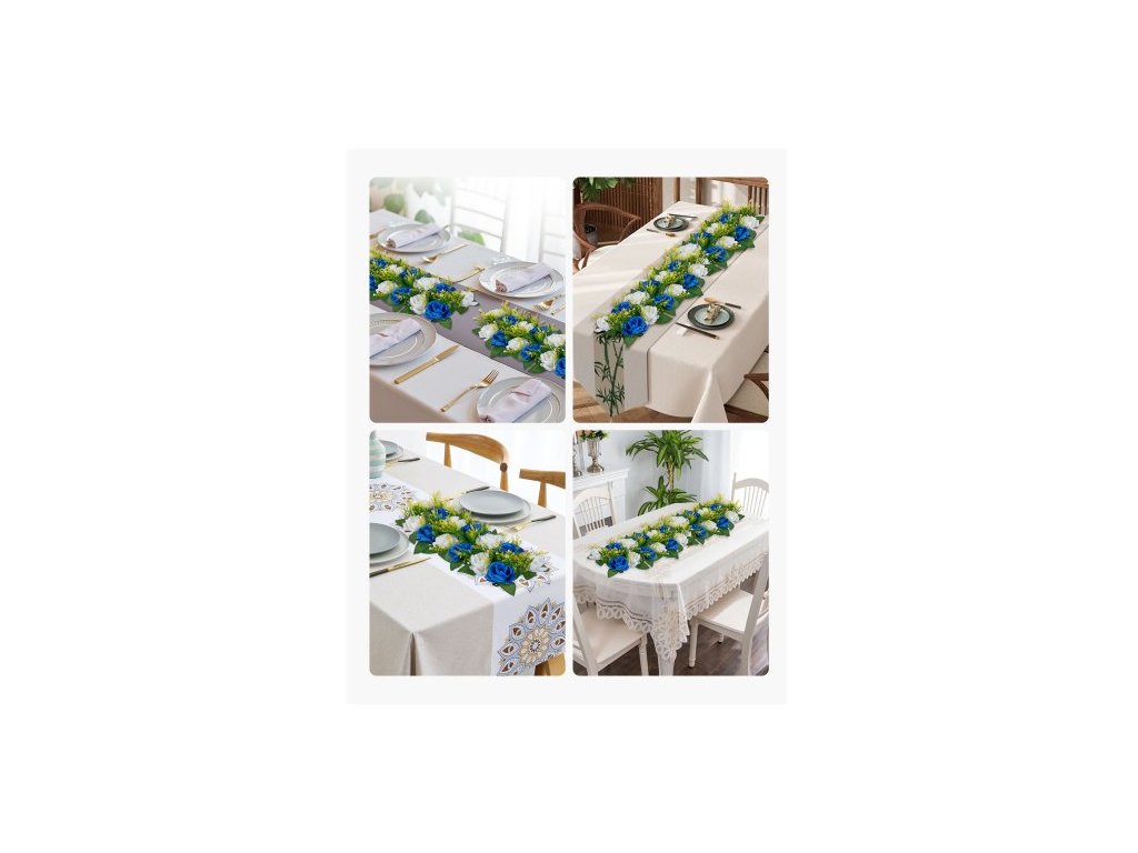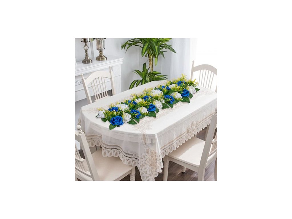 Květinová kytice s koulemi 10 ks, 500 x 220 mm Umělé květinové koule Svatební dekorace na stůl, Aranžmá z umělých růží pro svatební dekoraci, dekorace do interiéru, modré a bílé růže