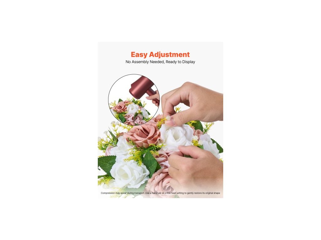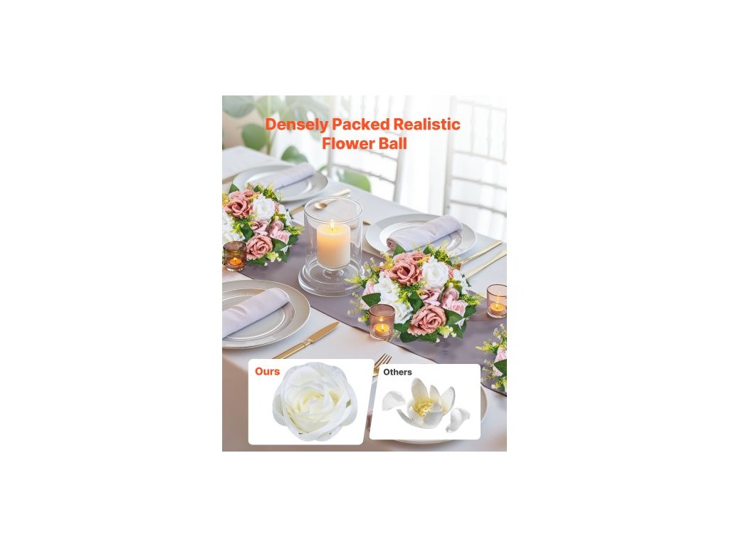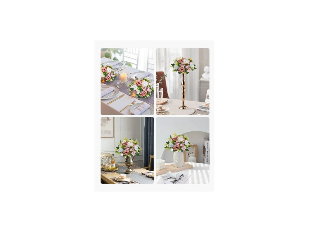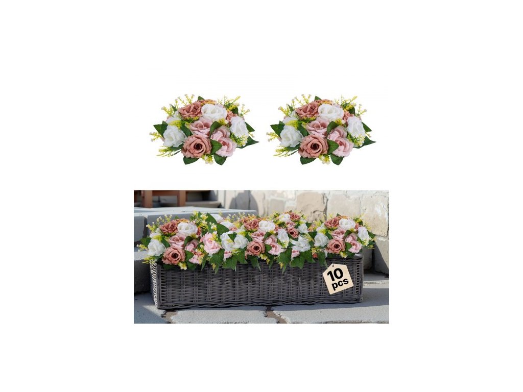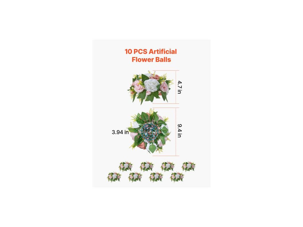 Květinové aranžmá Kytice 10 ks, Umělé květinové koule o průměru 240 mm, Svatební dekorace na stůl, Aranžmá z umělých růží pro svatební dekoraci, dekorace do interiéru, růžové a bílé růže