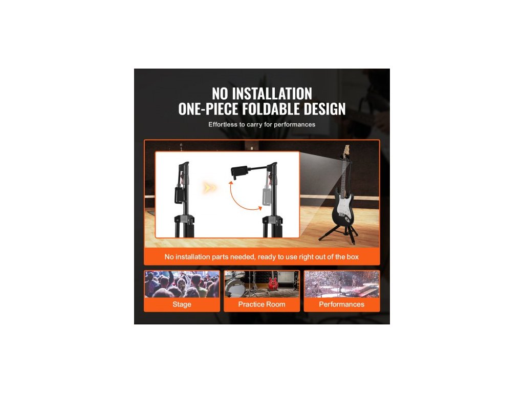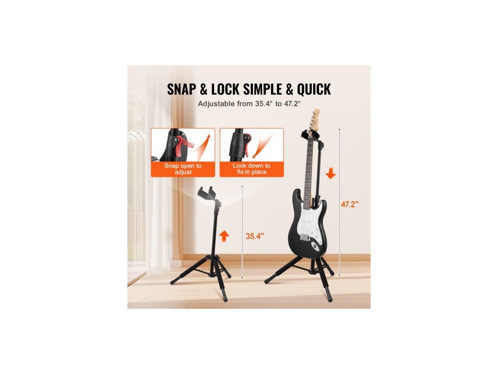 Kytarový stojan Tripod, skládací, na podlahu, nastavitelná výška 900–1200 mm (35,4–47,2 palce)