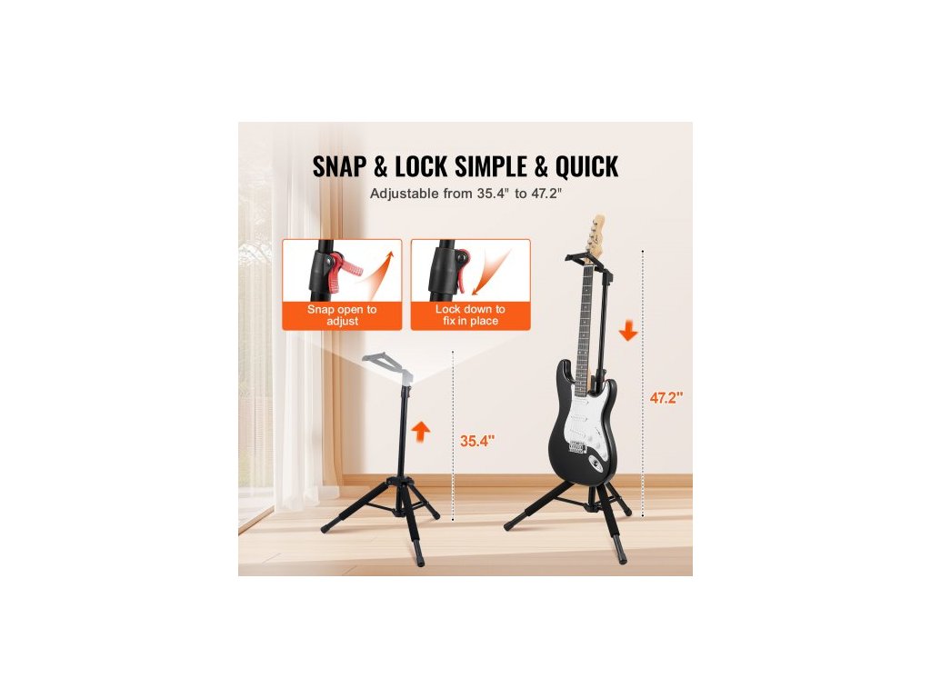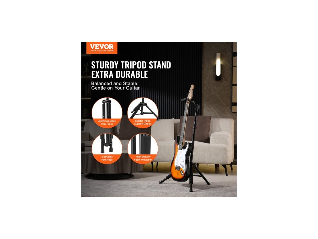 Kytarový stojan Tripod, skládací, na podlahu, nastavitelná výška 900–1200 mm (35,4–47,2 palce)