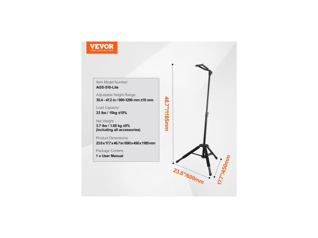Kytarový stojan Tripod, skládací, 900–1200 mm (35,4–47,2 palce), nastavitelná výškaRobustní konstrukce