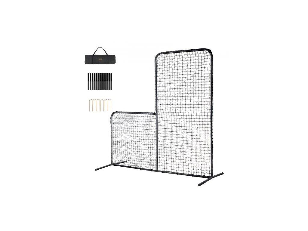L Screen Baseball pro odpalování, 7x7 stop baseballová bezpečnostní zástěna na softball, chránič těla přenosná odpalovací zástěna s přepravní taškou a kolíky, odolná síť na nadhazování pro ochranu nadhazovačů